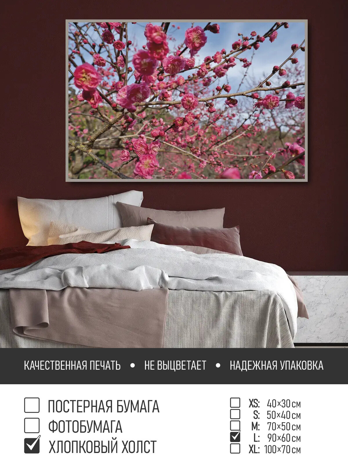 Постер на холсте Ветки цветущей сливы, 90х60 см ПолиЦентр, цифровая фотопечать информация: