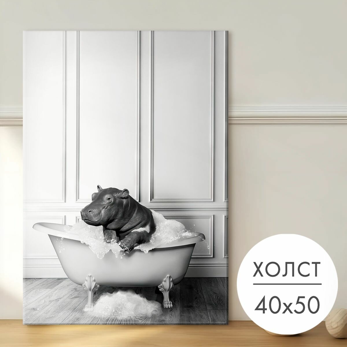 Картина на холсте "Бегемот в ванной" 40x50 на стену для интерьера информация: