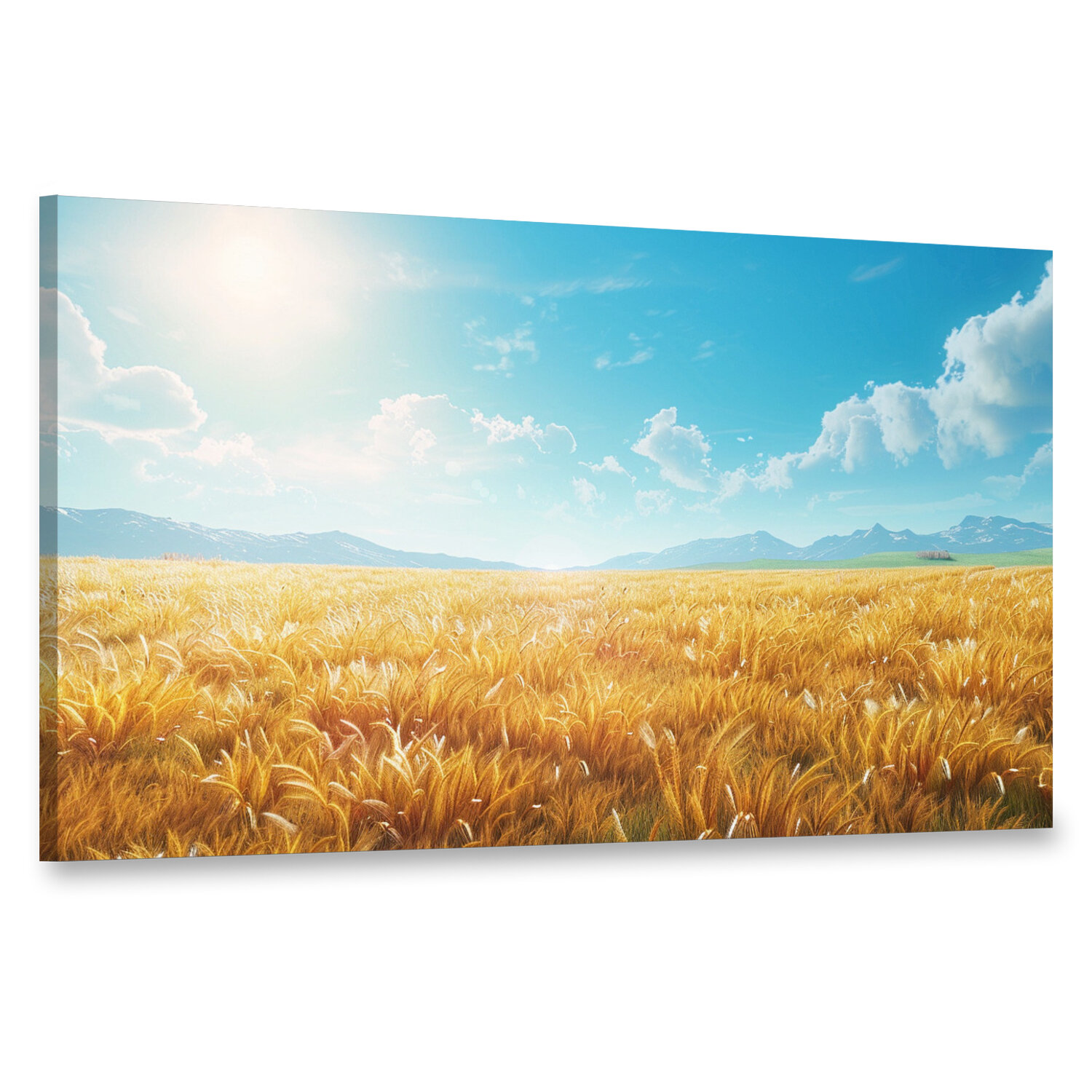 10 цен на Картина на холсте интерьерная 100х60 см, пейзаж, лето, солнце, пшеница, поле, горы, небо, разрешение, живописный