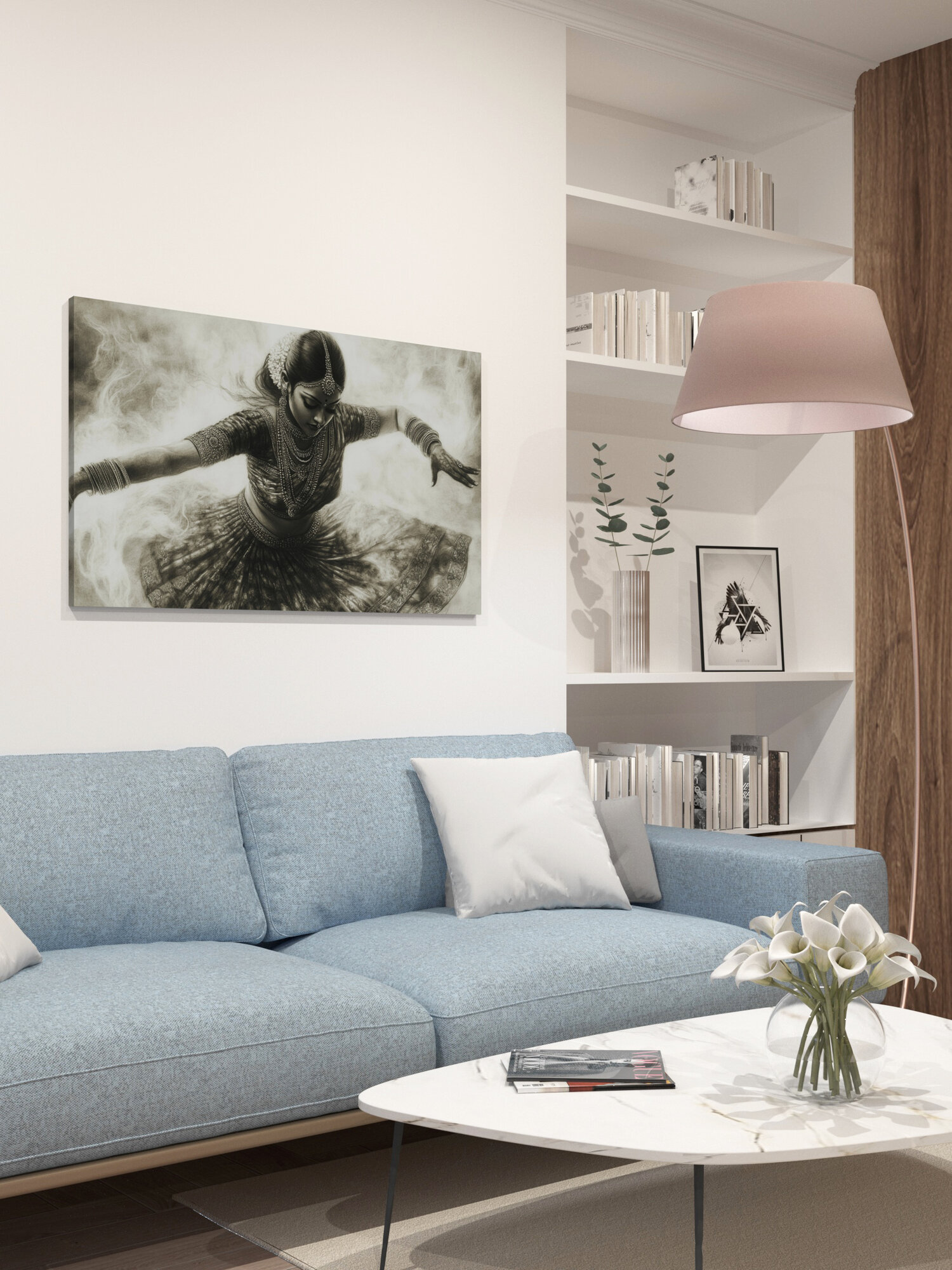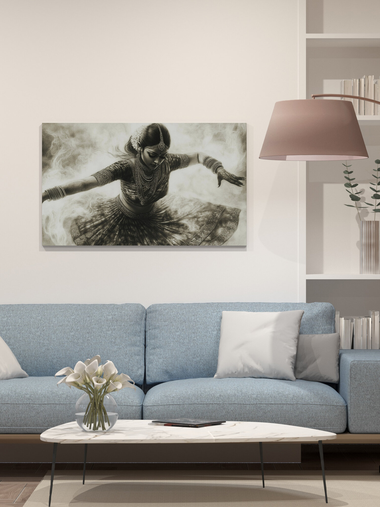 Картина на холсте интерьерная 100х60 см, традиционная, индийская, танцовщица, уголь, рисунок, поза, наряд, грация информация: