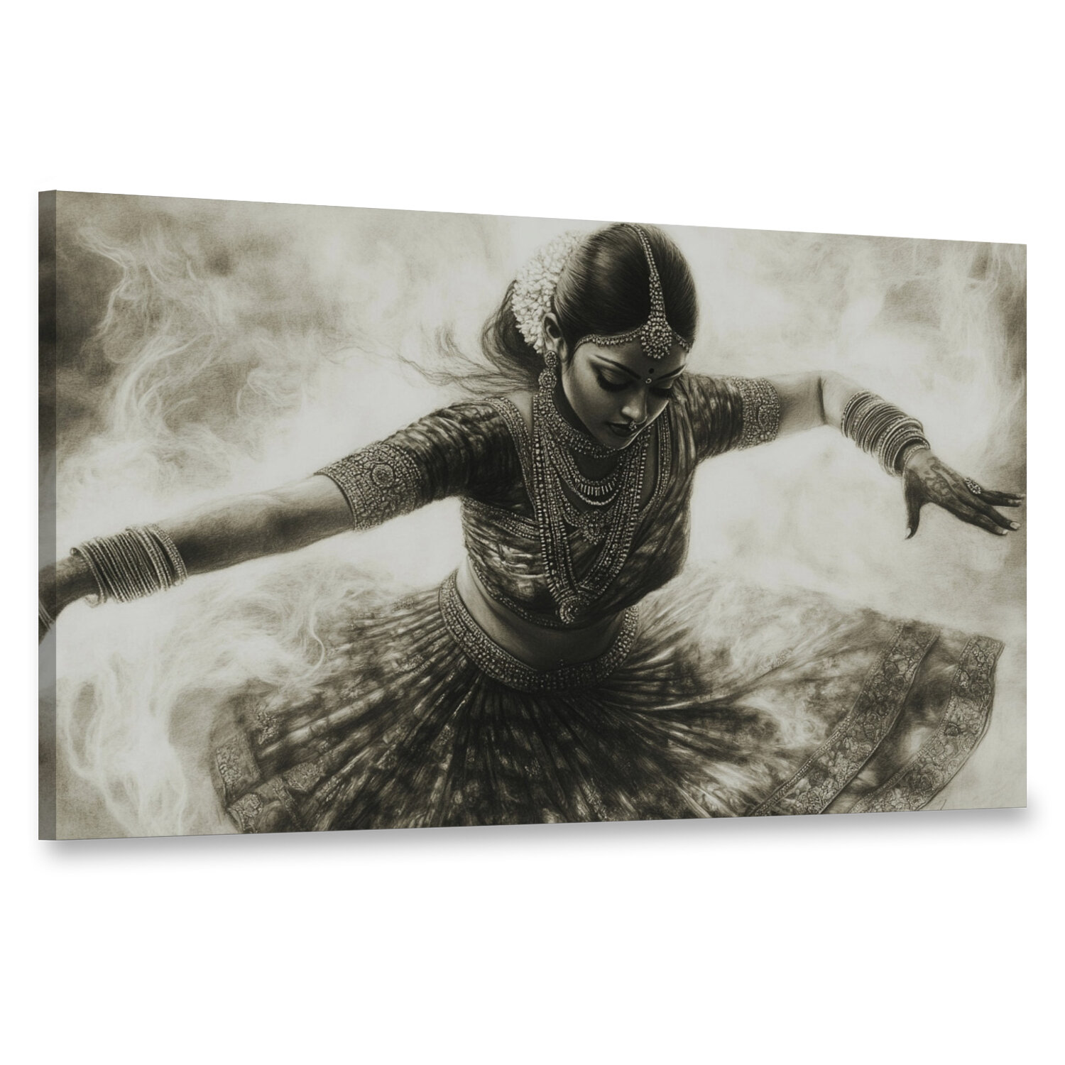 10 цен на Картина на холсте интерьерная 100х60 см, традиционная, индийская, танцовщица, уголь, рисунок, поза, наряд, грация