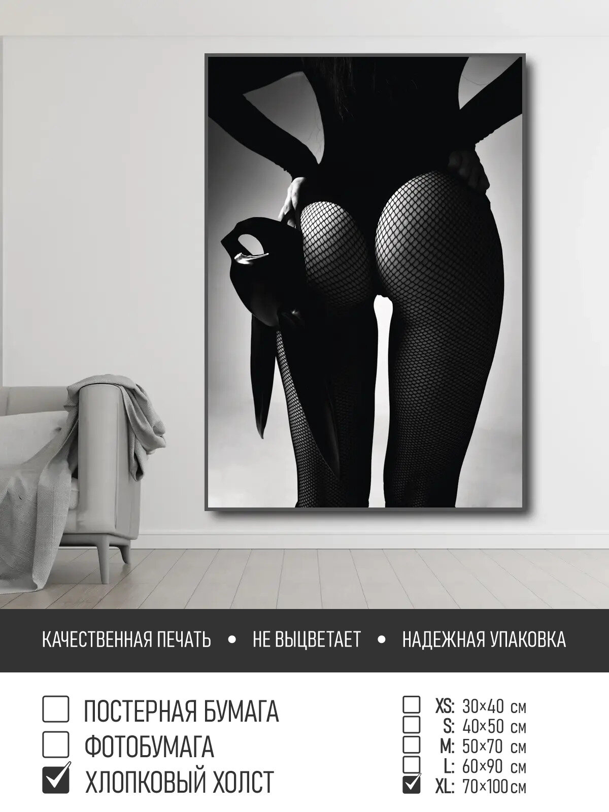 Постер на холсте Сексуальная девушка в черном, 70х100 см ПолиЦентр, цифровая фотопечать информация: