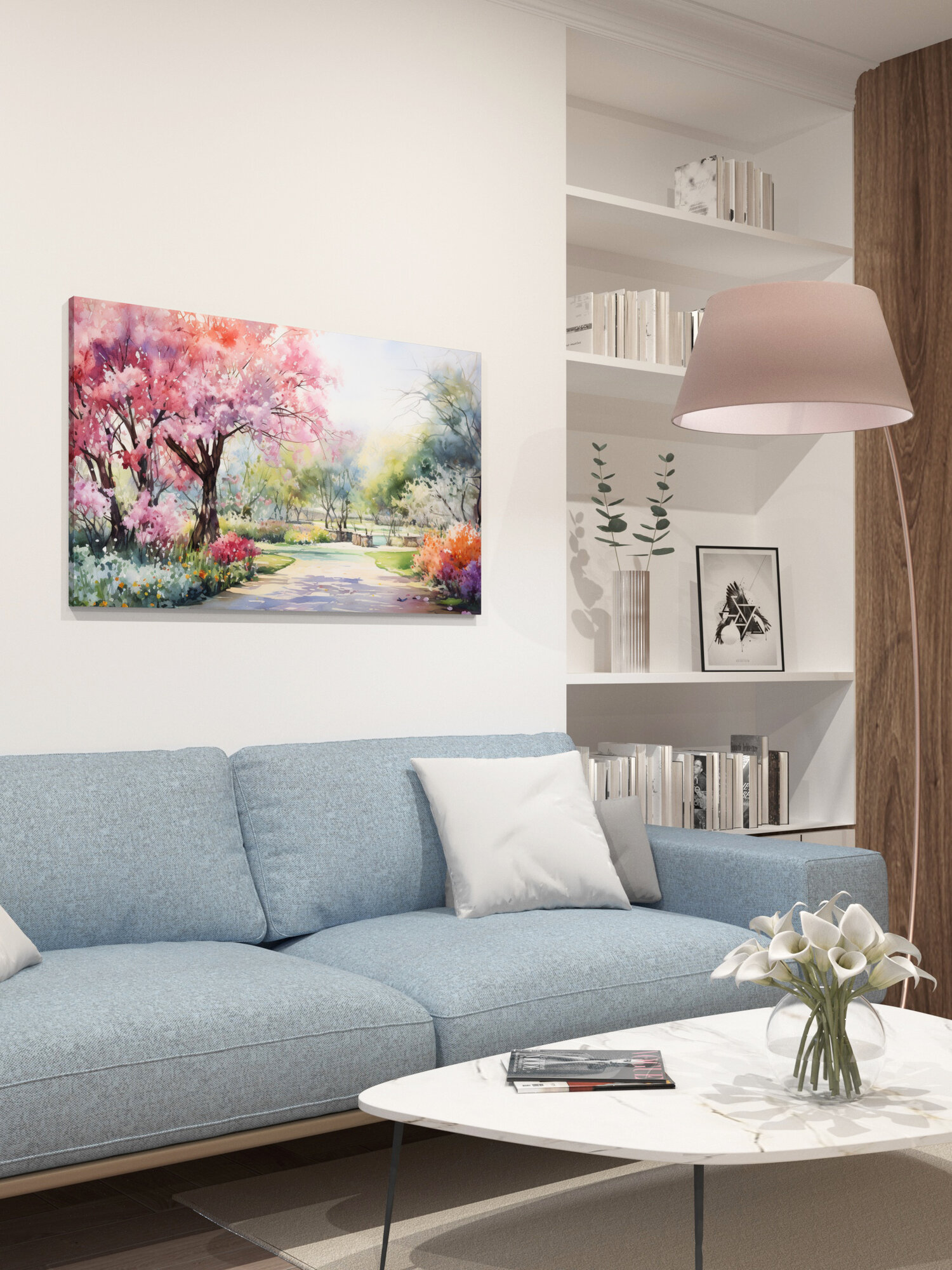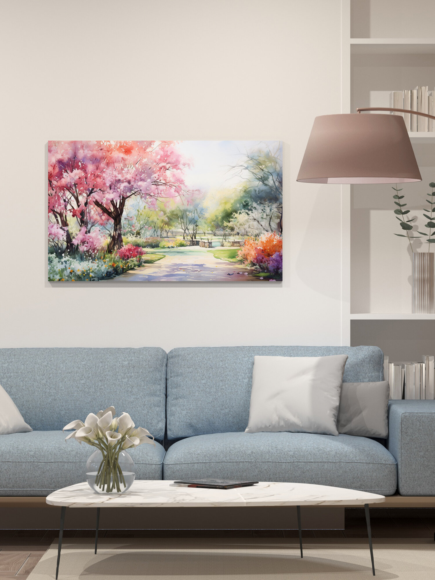 10 цен на Картина на холсте интерьерная 100х60 см, акварельная картина, художественный стиль Клод, сад, яркие цветы