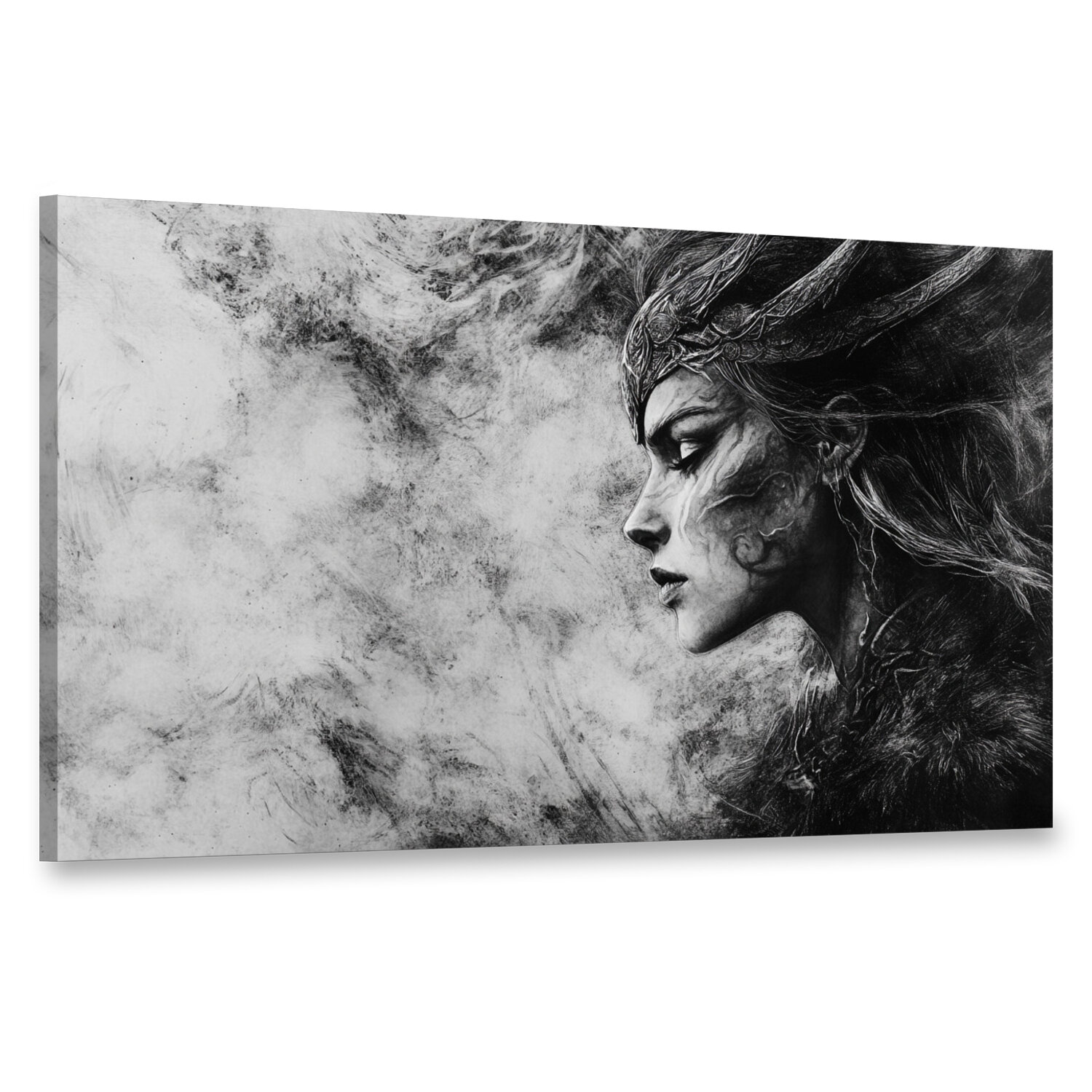 10 цен на Картина на холсте интерьерная 100х60 см, Хель, скандинавская богиня, уголь, мистика, холод, туман, пейзаж, загадочность