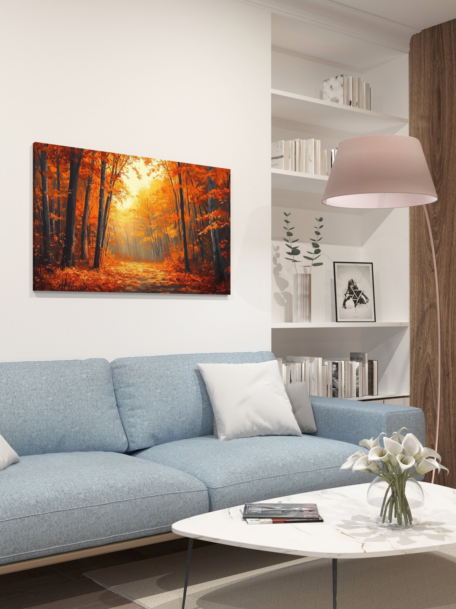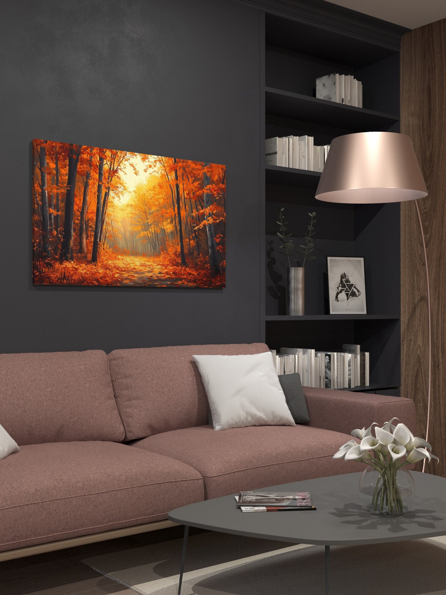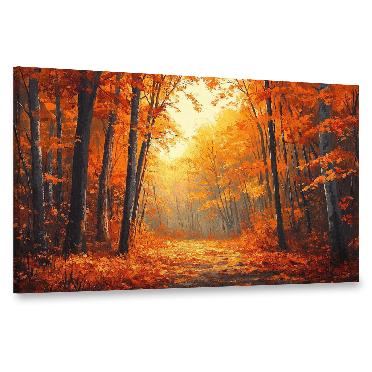 Картина на холсте интерьерная 100х60 см, осеннее равноденствие, лесной пейзаж, масляная картина, теплые тонов информация: