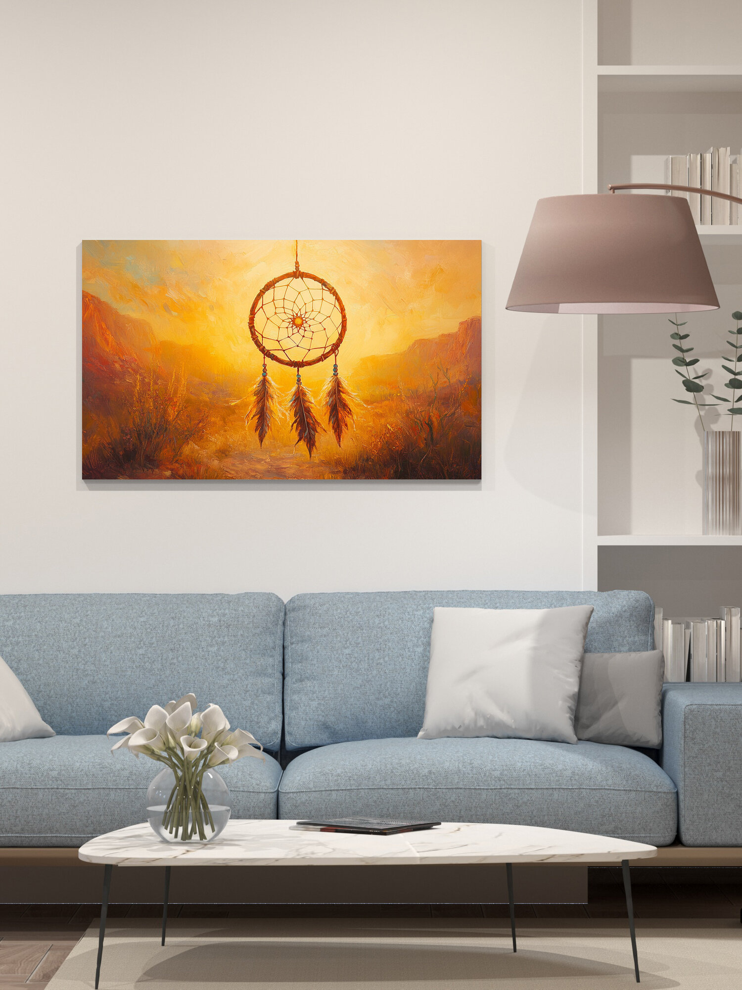 Картина на холсте интерьерная 100х60 см, ловец снов, пустынный пейзаж, масляная картина, яркие краски, солнечный фон информация: