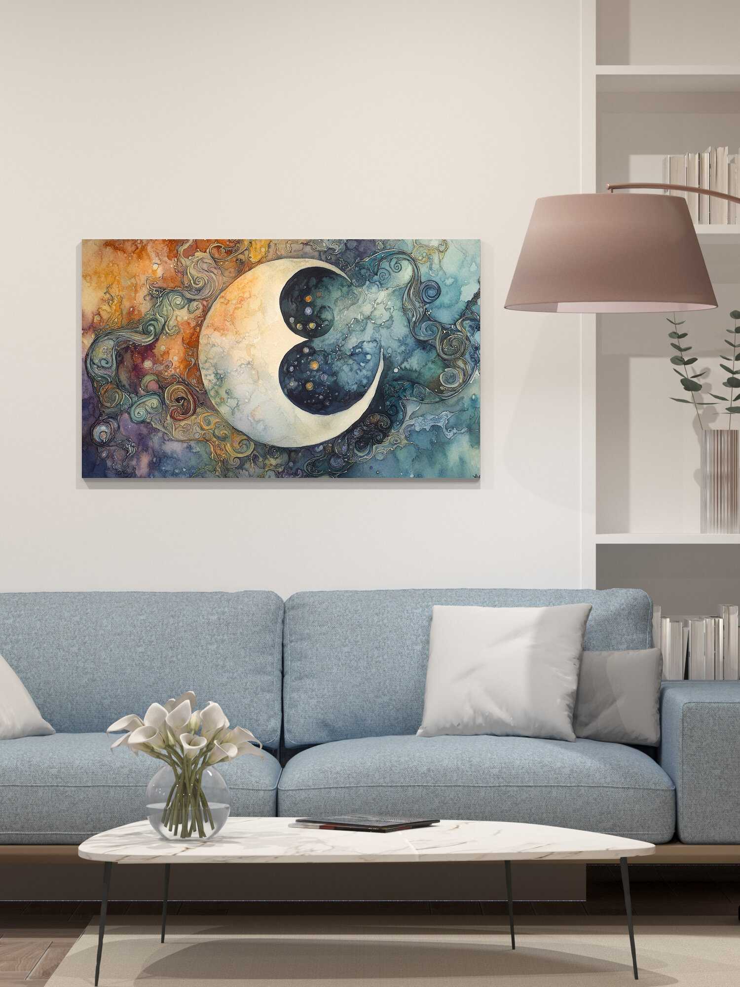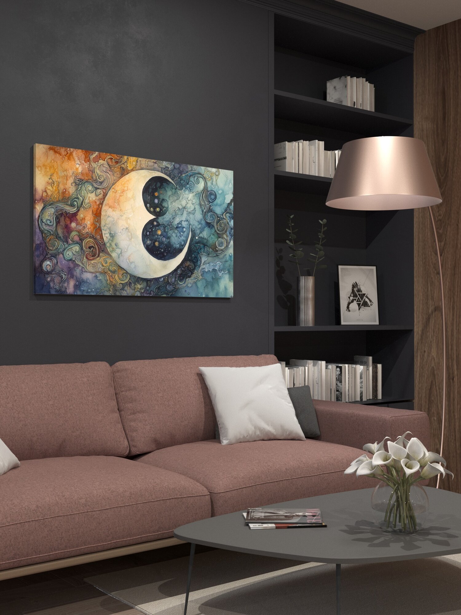 Картина на холсте интерьерная 100х60 см, акварель, инь-ян, цвета, формы, единство, гармония, контраст, символ информация: