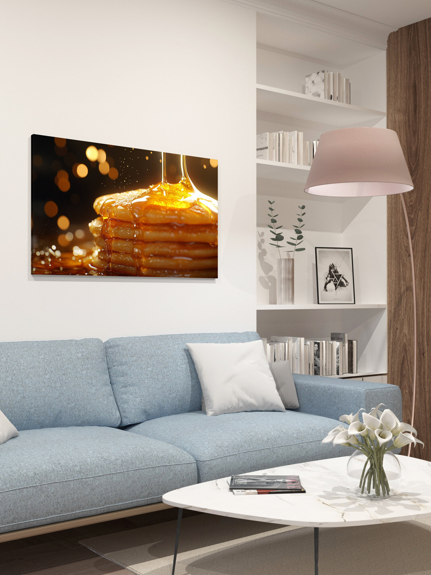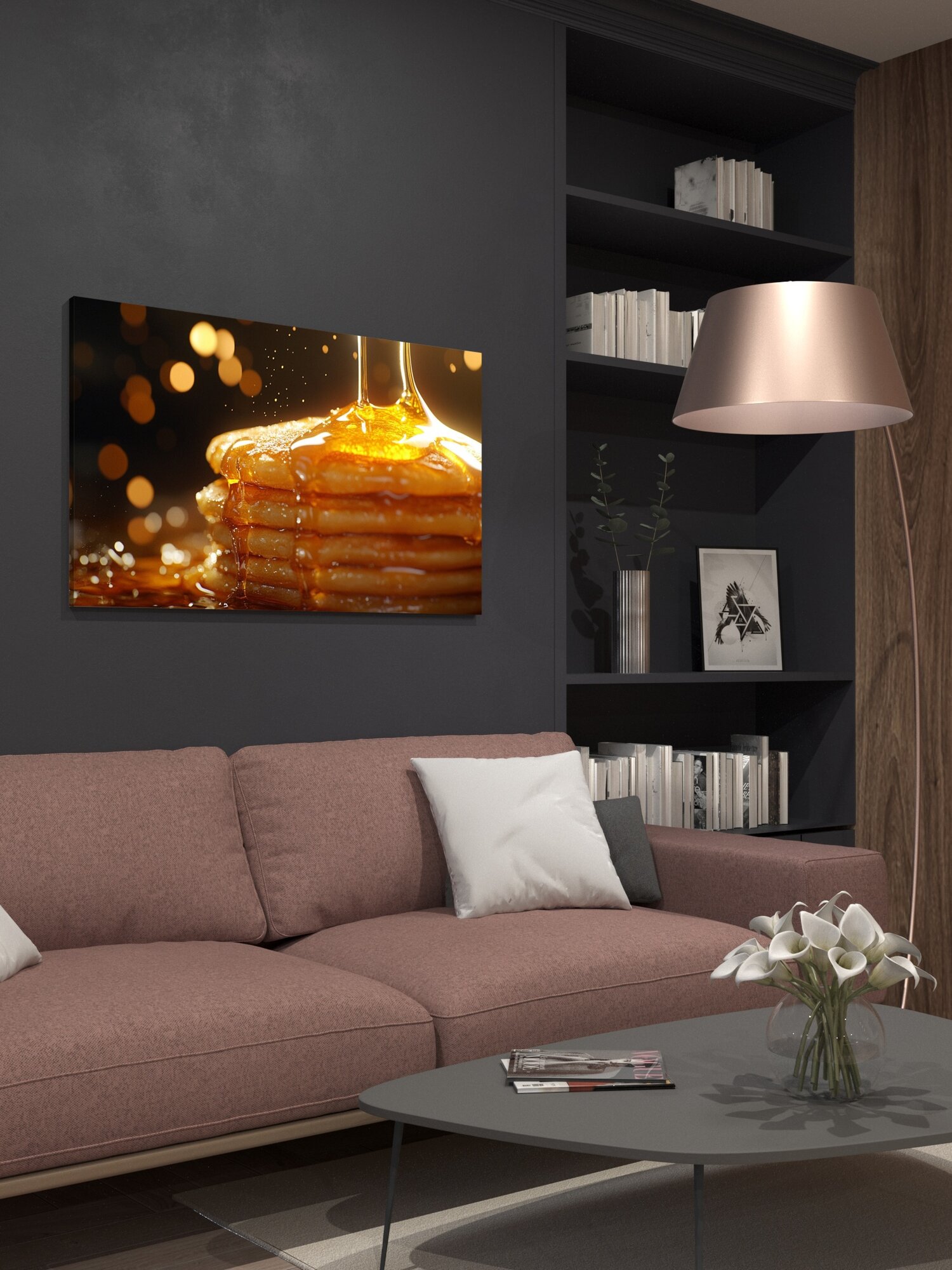 10 цен на Картина на холсте интерьерная 100х60 см, блинчики, медовая глазурь, текстура, цвет, аппетитные детали, атмосфера