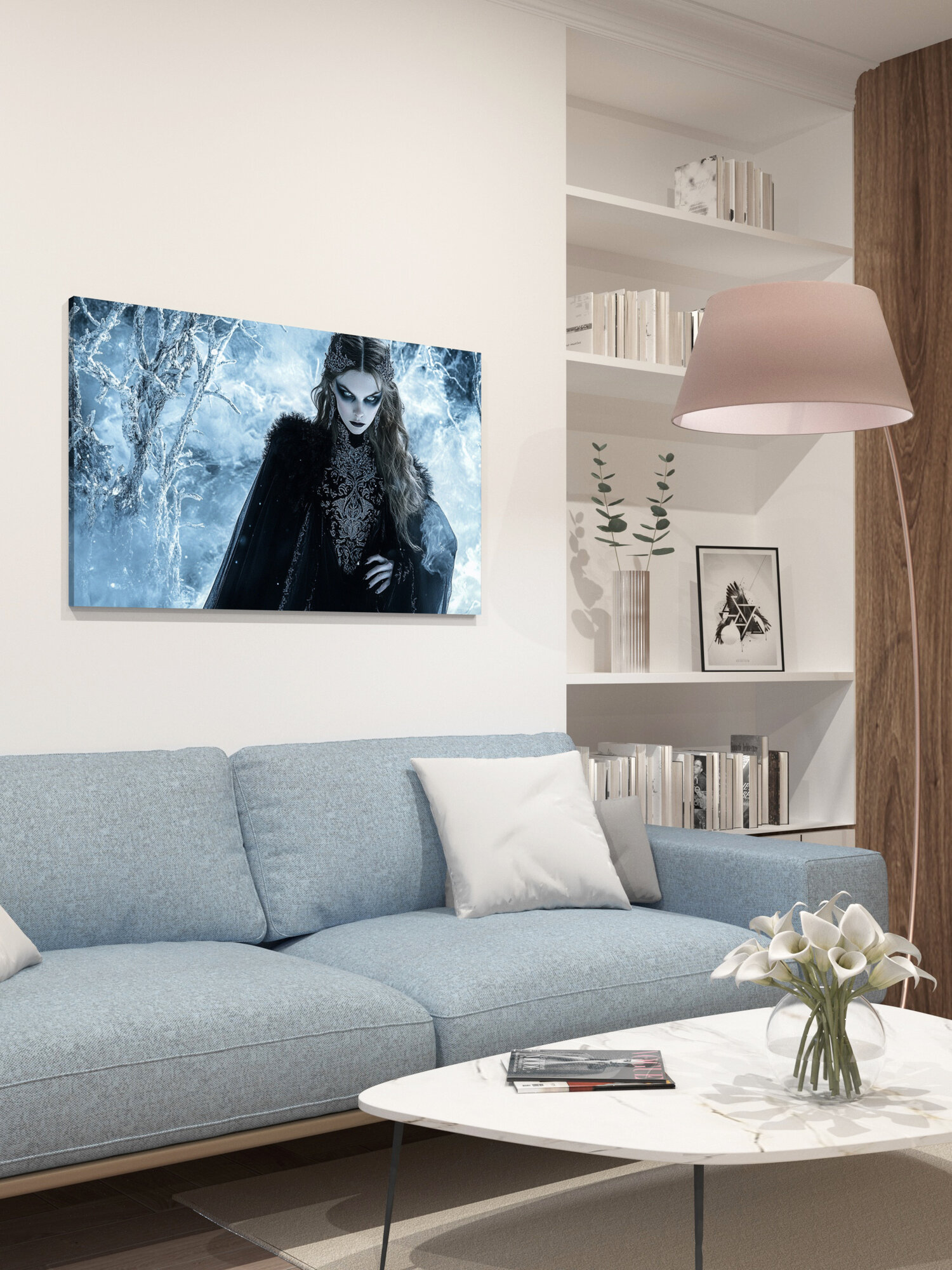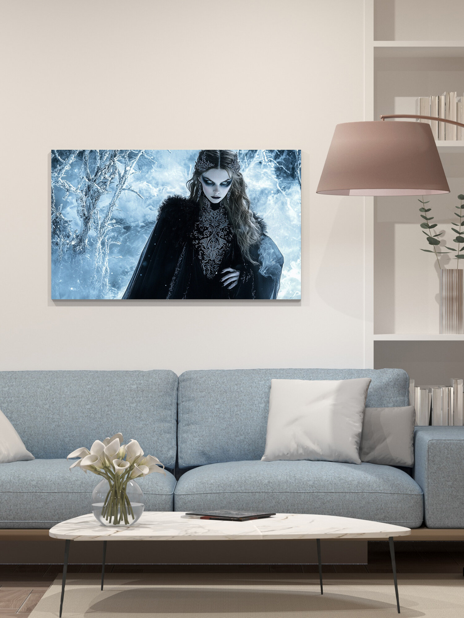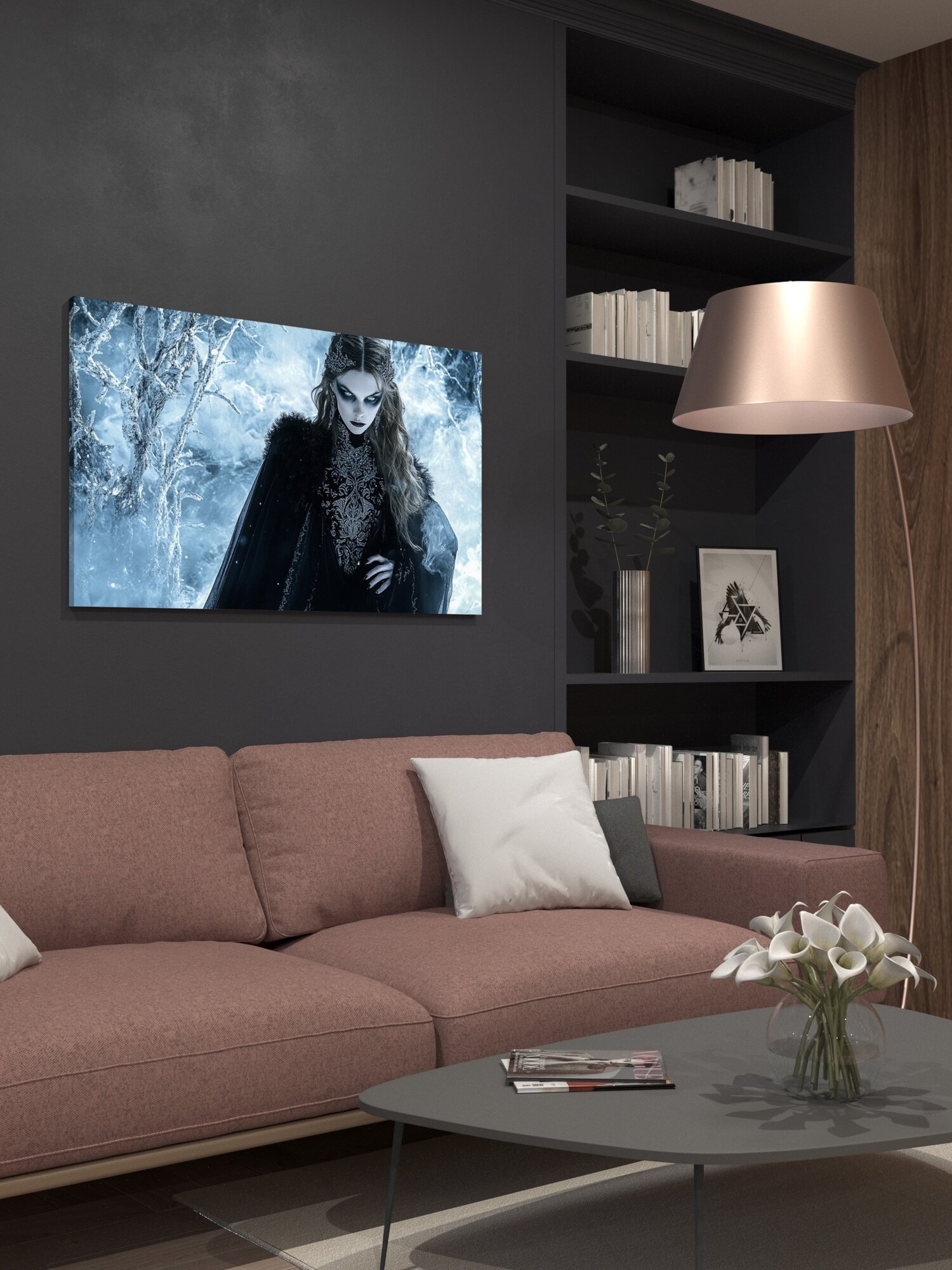 Картина на холсте интерьерная 100х60 см, Снежная королева, фотореализм, цифровой портрет, ледяная корона, магия, детали