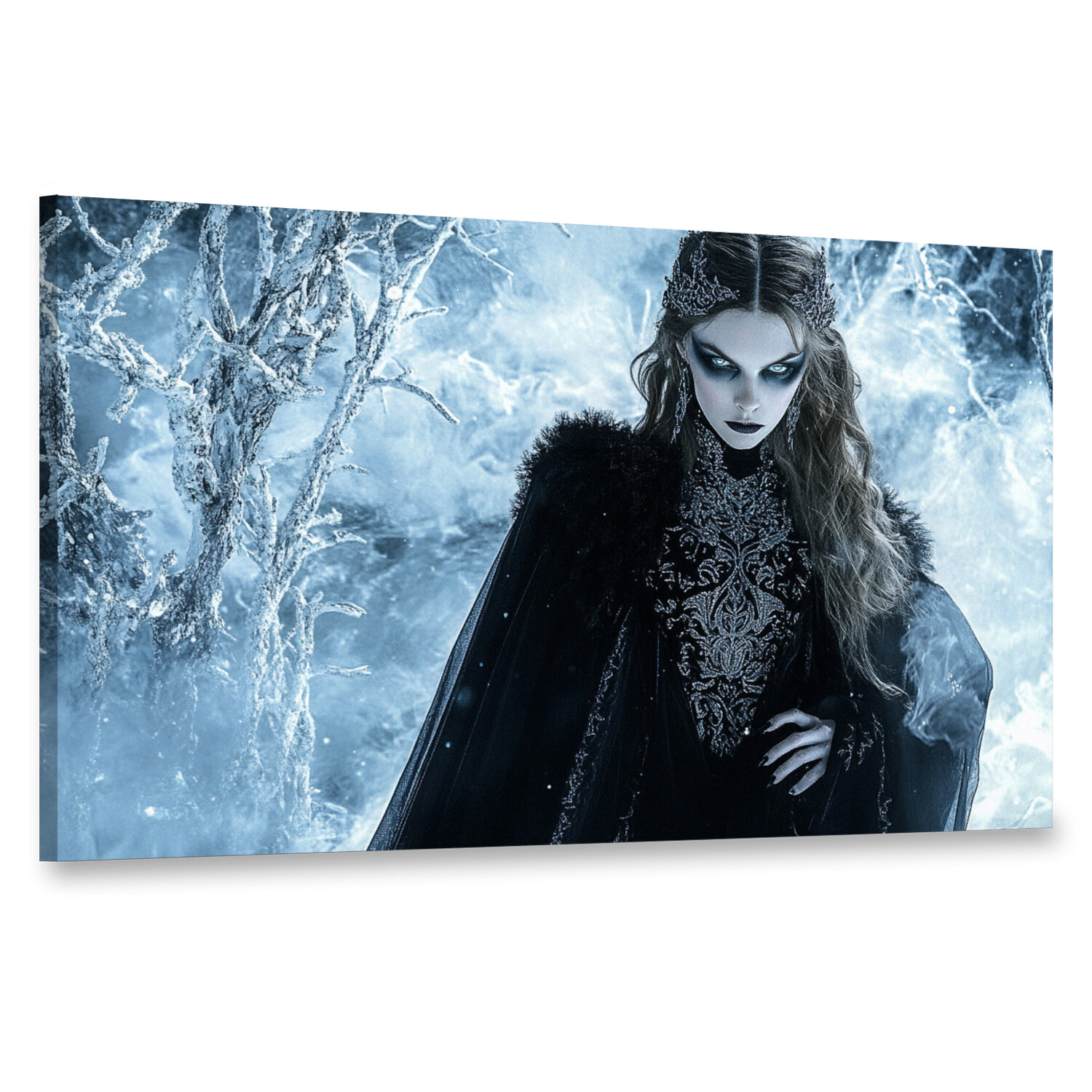 10 цен на Картина на холсте интерьерная 100х60 см, Хель, скандинавская богиня, могущественная фигура, бледная кожа, голубые глаза