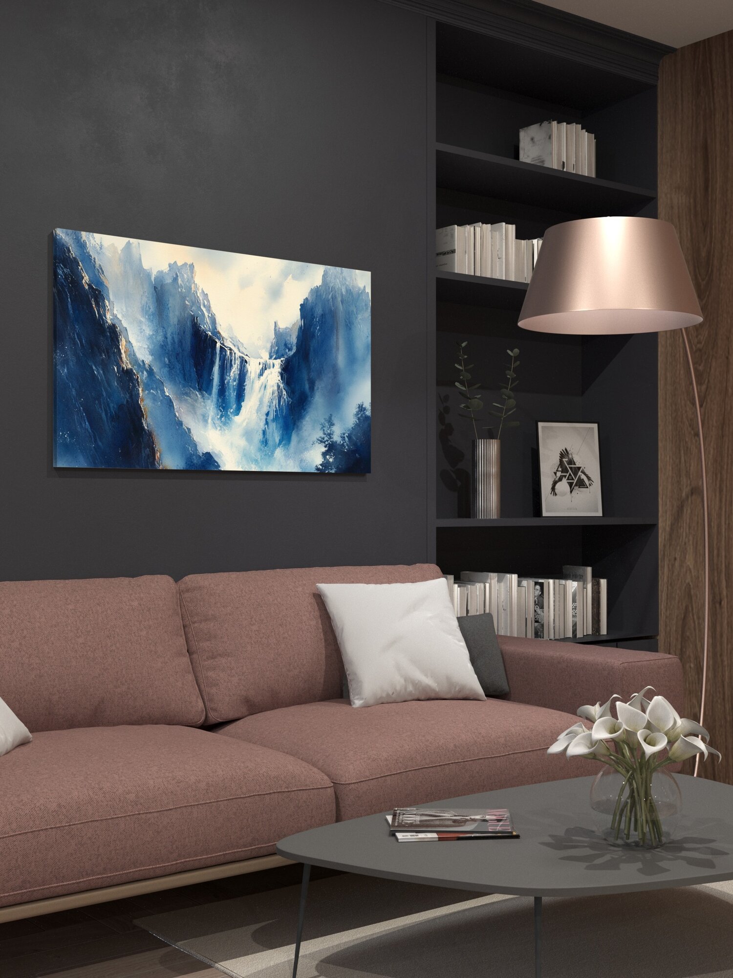 Картина на холсте интерьерная 100х60 см, Водопад, горные утесы, акварельная иллюстрация, скалистый фон, каскадный информация: