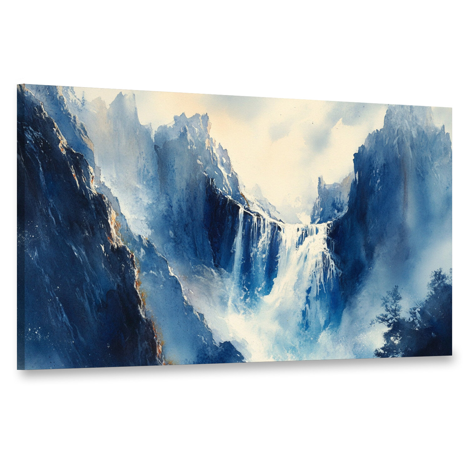 10 цен на Картина на холсте интерьерная 100х60 см, Водопад, горные утесы, акварельная иллюстрация, скалистый фон, каскадный