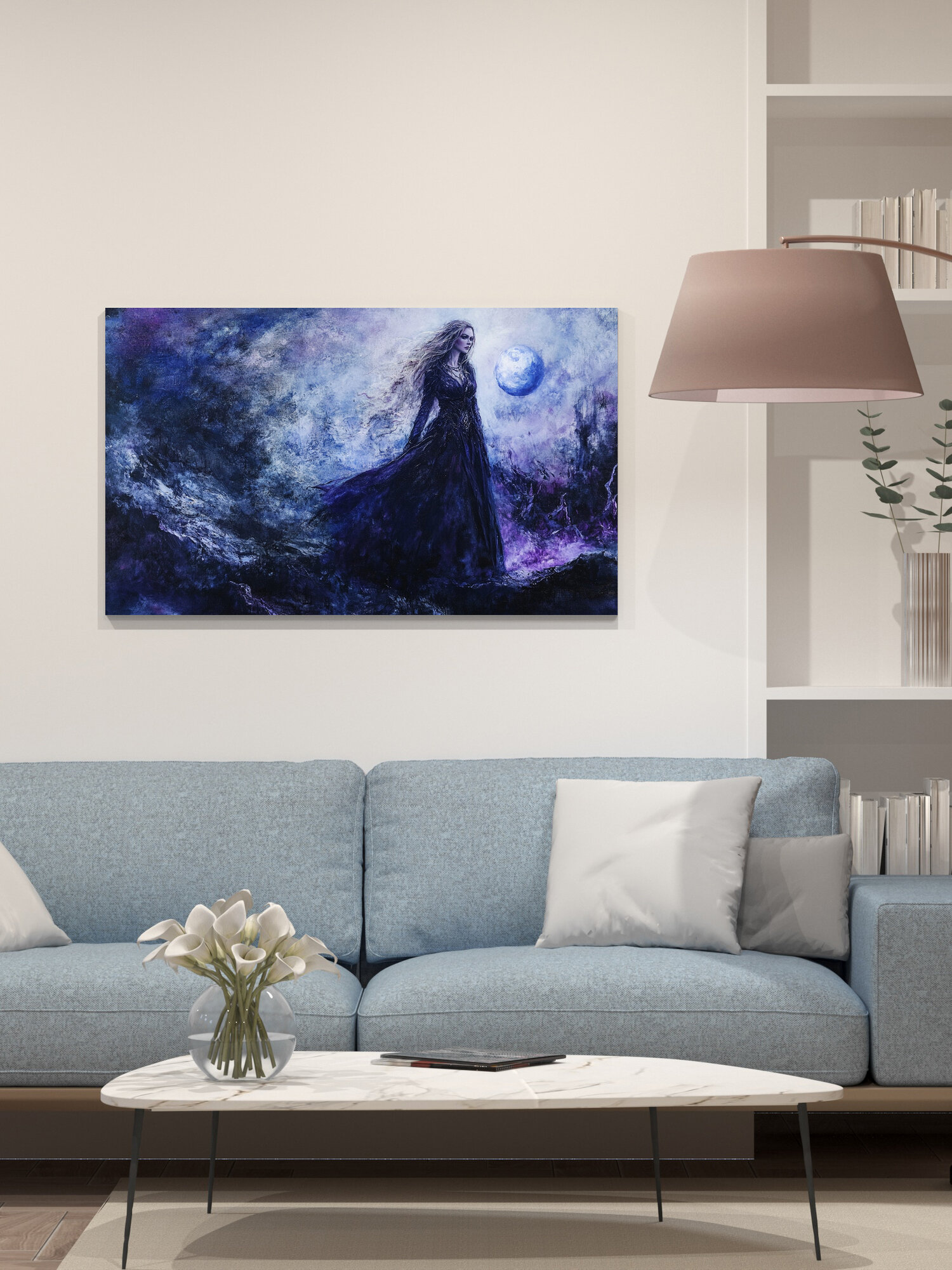10 цен на Картина на холсте интерьерная 100х60 см, скандинавская богиня Хель, масляная картина, элегантность, мрачность