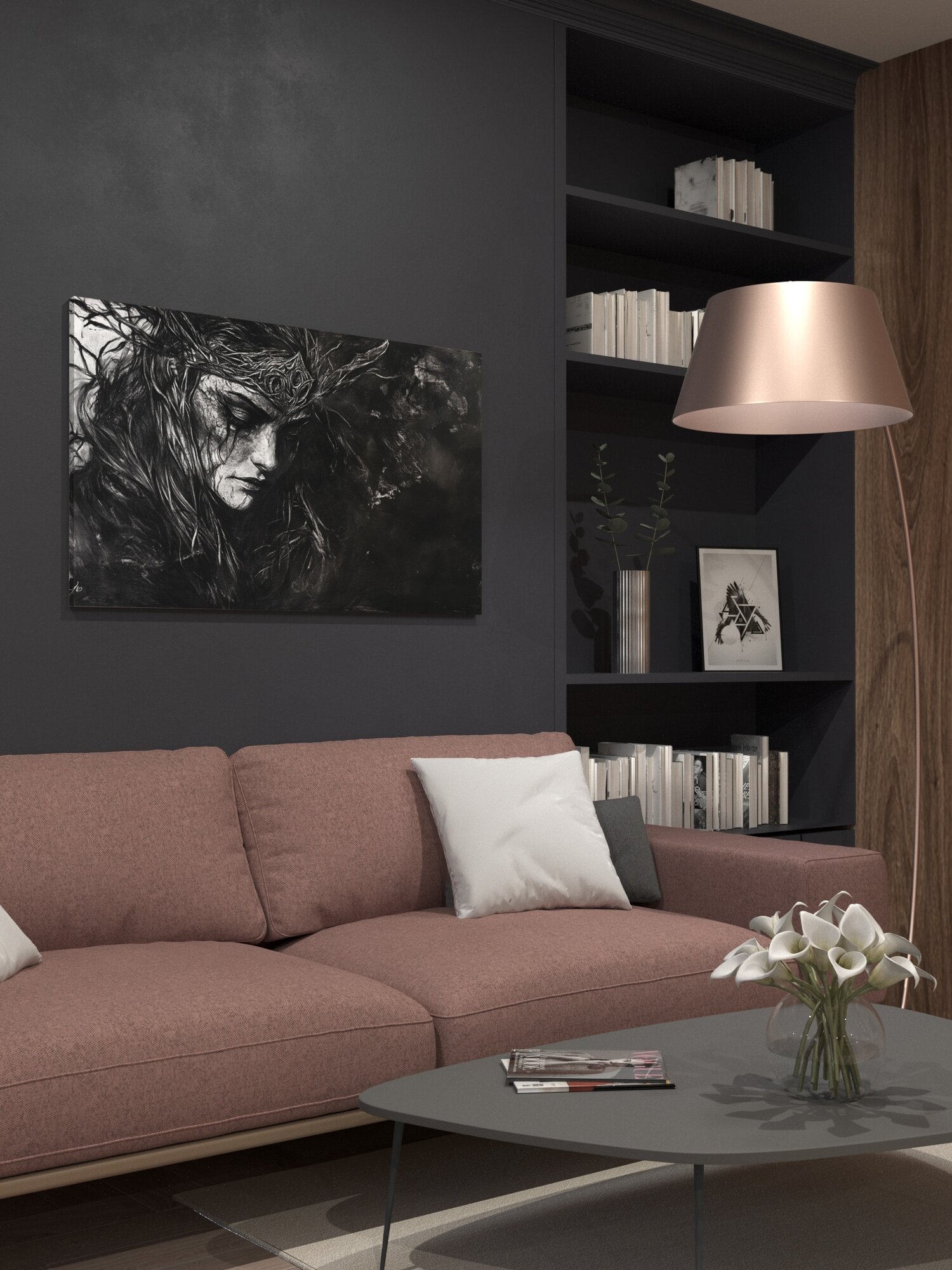 Отзывы на Картина на холсте интерьерная 100х60 см, Хель, скандинавская богиня, уголь, таинственное присутствие, подземный мир