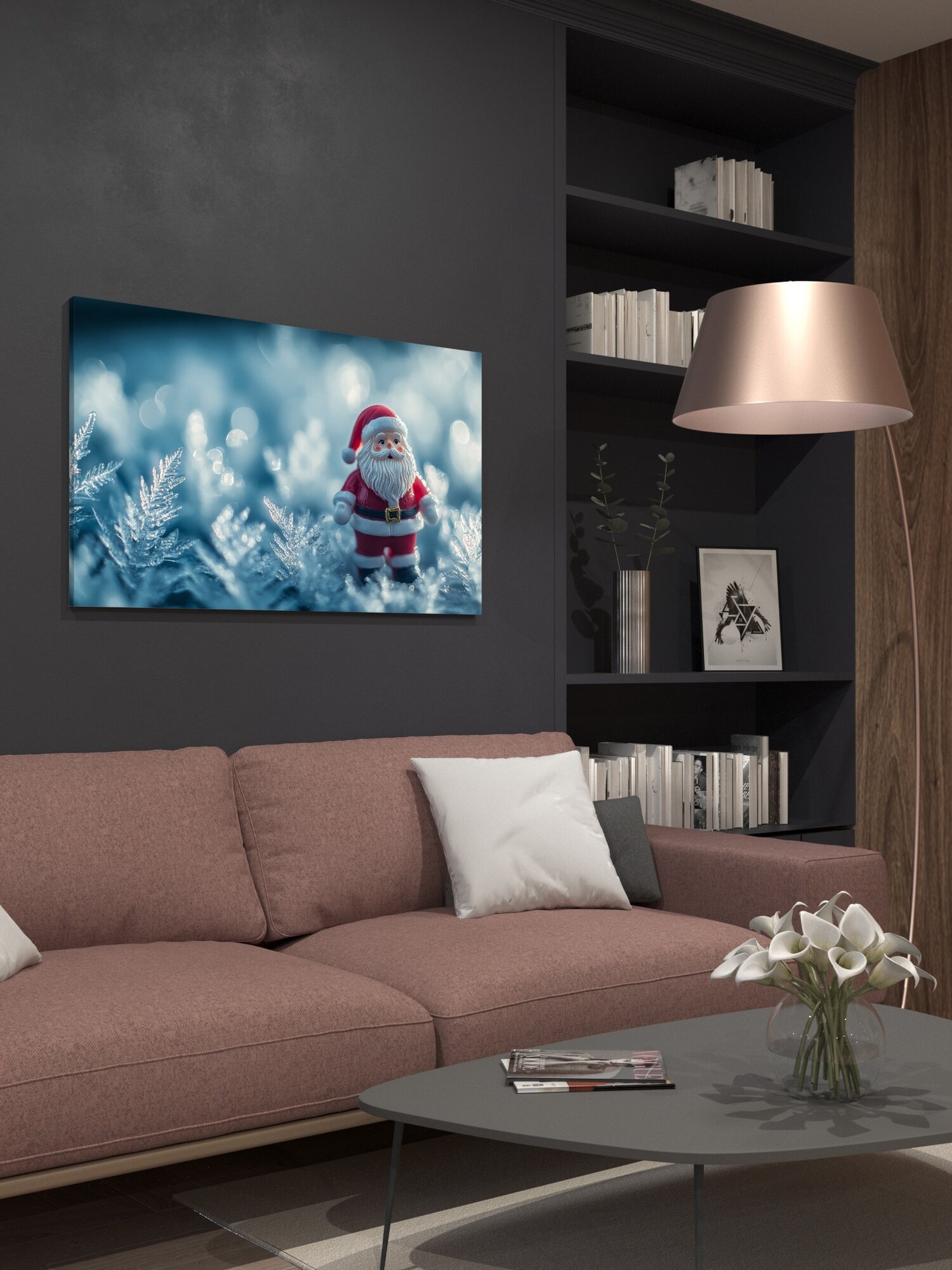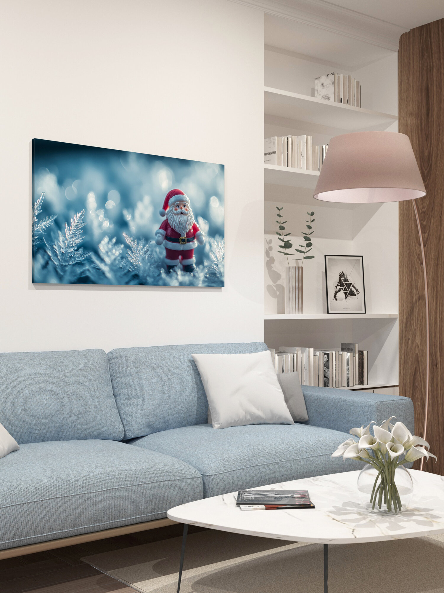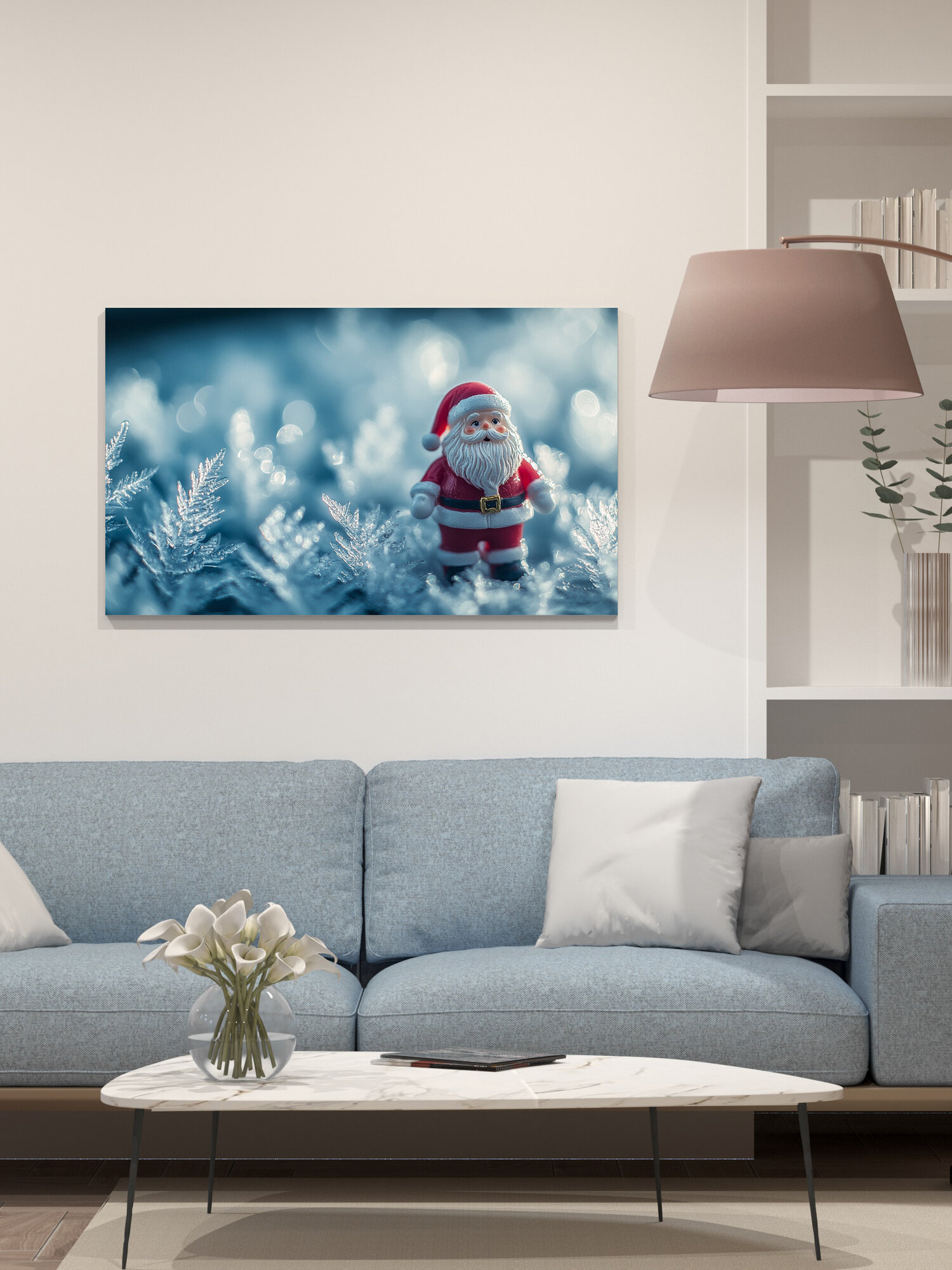 Отзывы на Картина на холсте интерьерная 100х60 см, Санта-Клаус, статуэтка, ледяные узоры, праздничное настроение, фотография