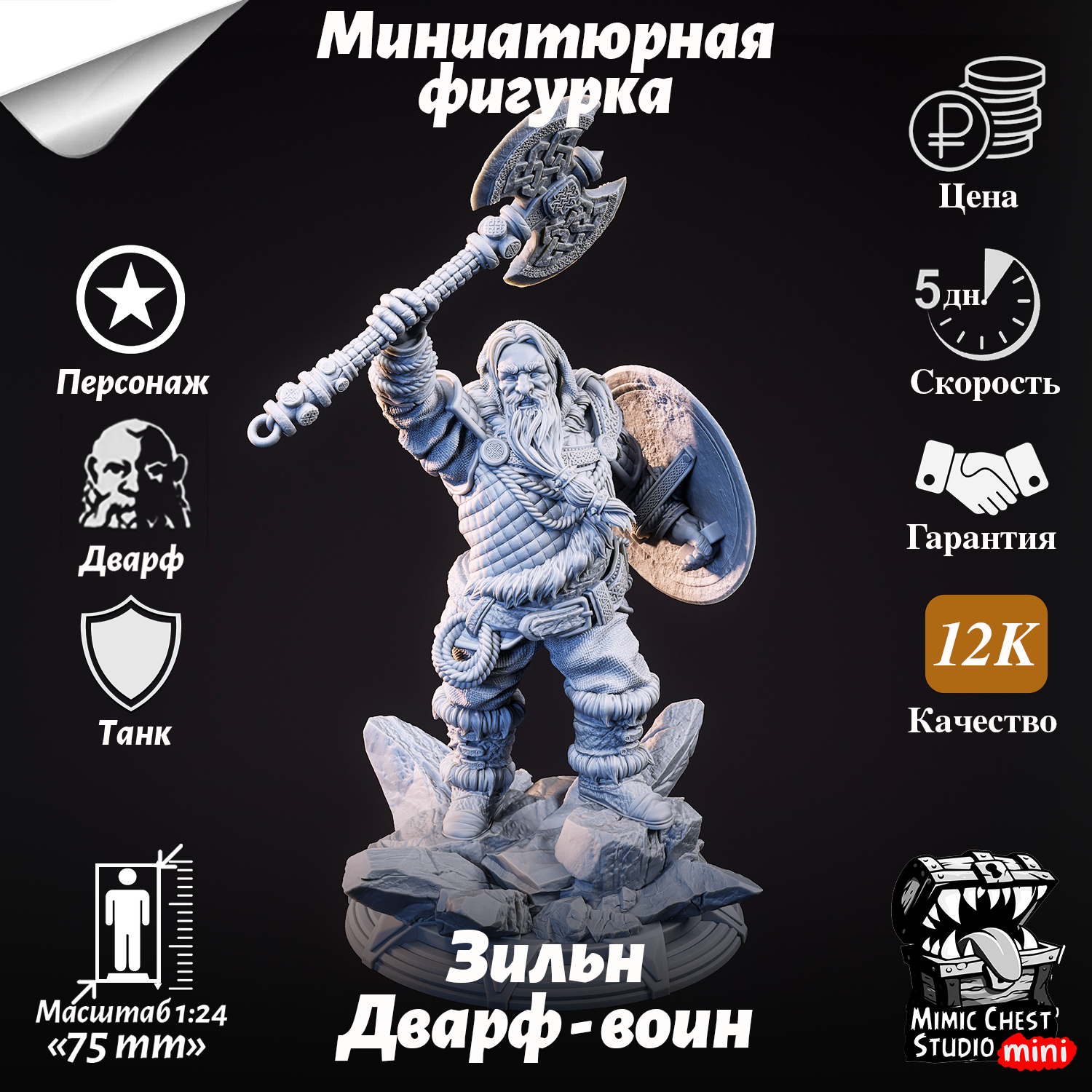 Миниатюрная фигурка дварф-воин Зильн (Ziln) для игр DnD под покраску, 75mm информация: