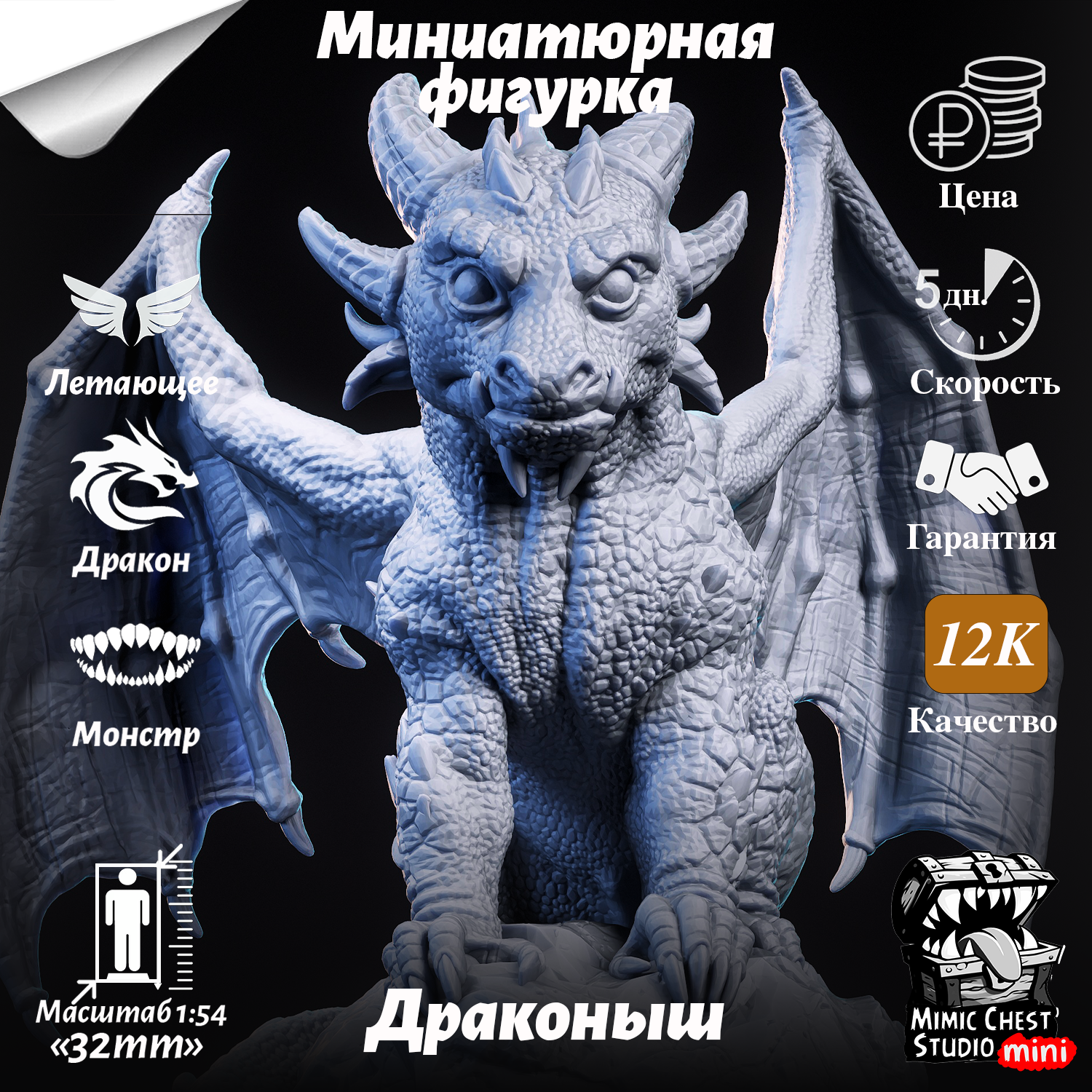 10 цен на Миниатюрная фигурка Драконыша (Drakeling) для игр DnD под покраску, 32mm