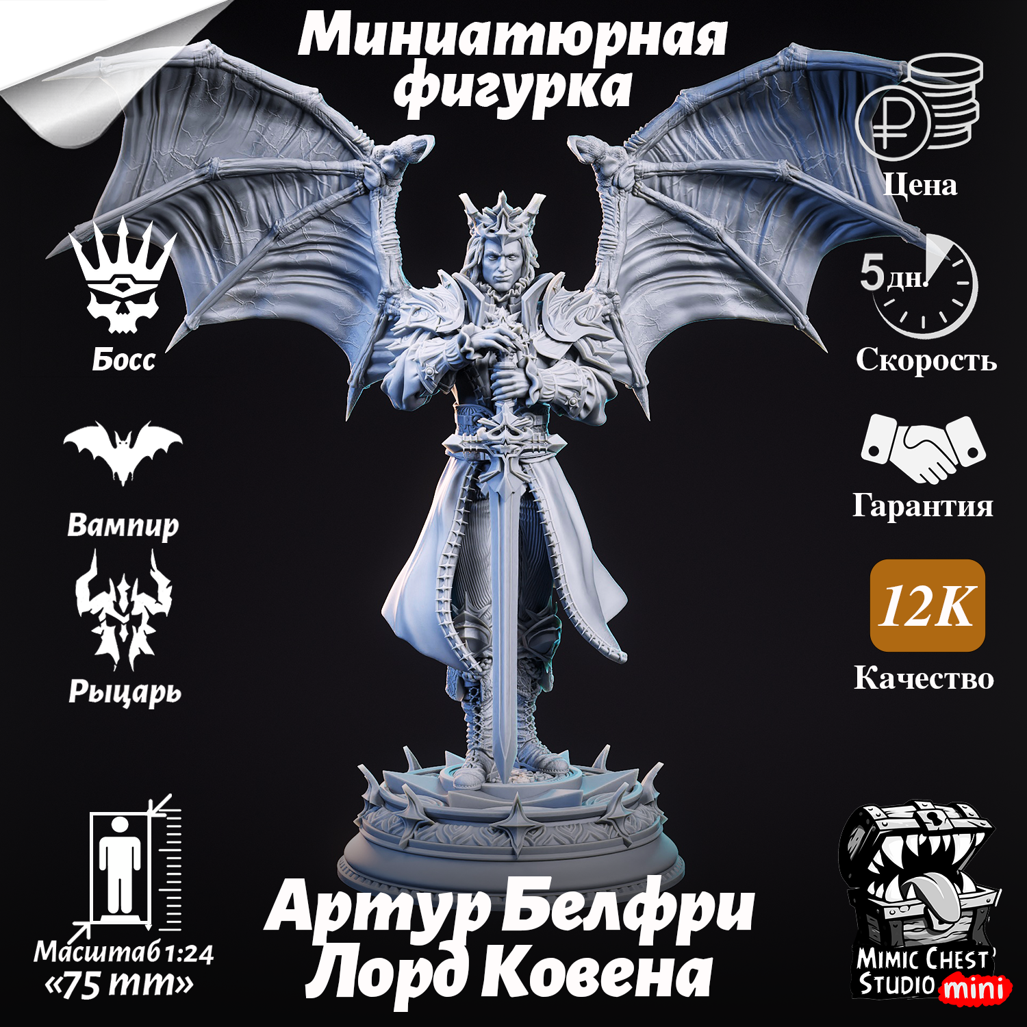 Отзывы на Миниатюрная фигурка вампир Артур Белфри Лорд Ковена (Arthur Belfrie - Lord of the Coven) для игр DnD под покраску, 75mm