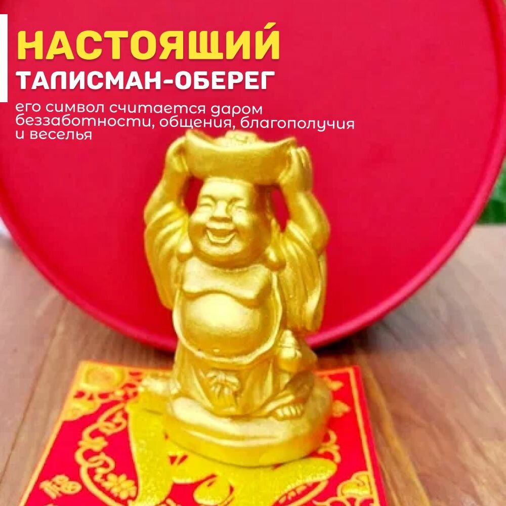 Отзывы на Статуэтка Хотей со слитком на салфетке с монеткой, бог богатства фен шуй