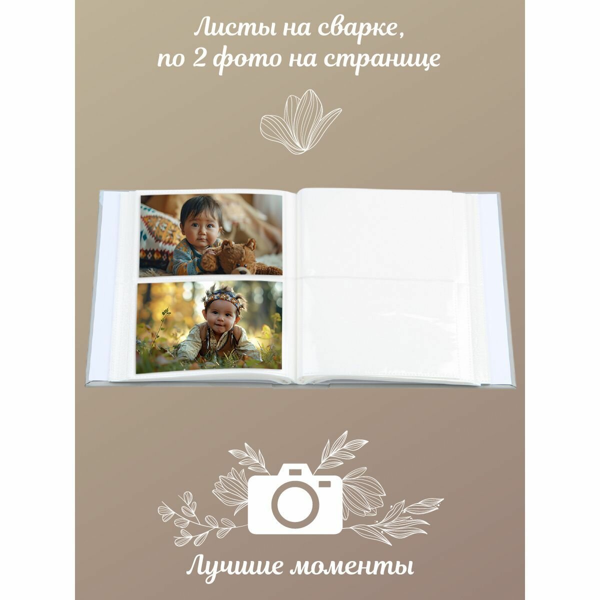Фотоальбом из эко-кожи, двухцветный с вышивкой, 200 фото 10х15 см в кармашках