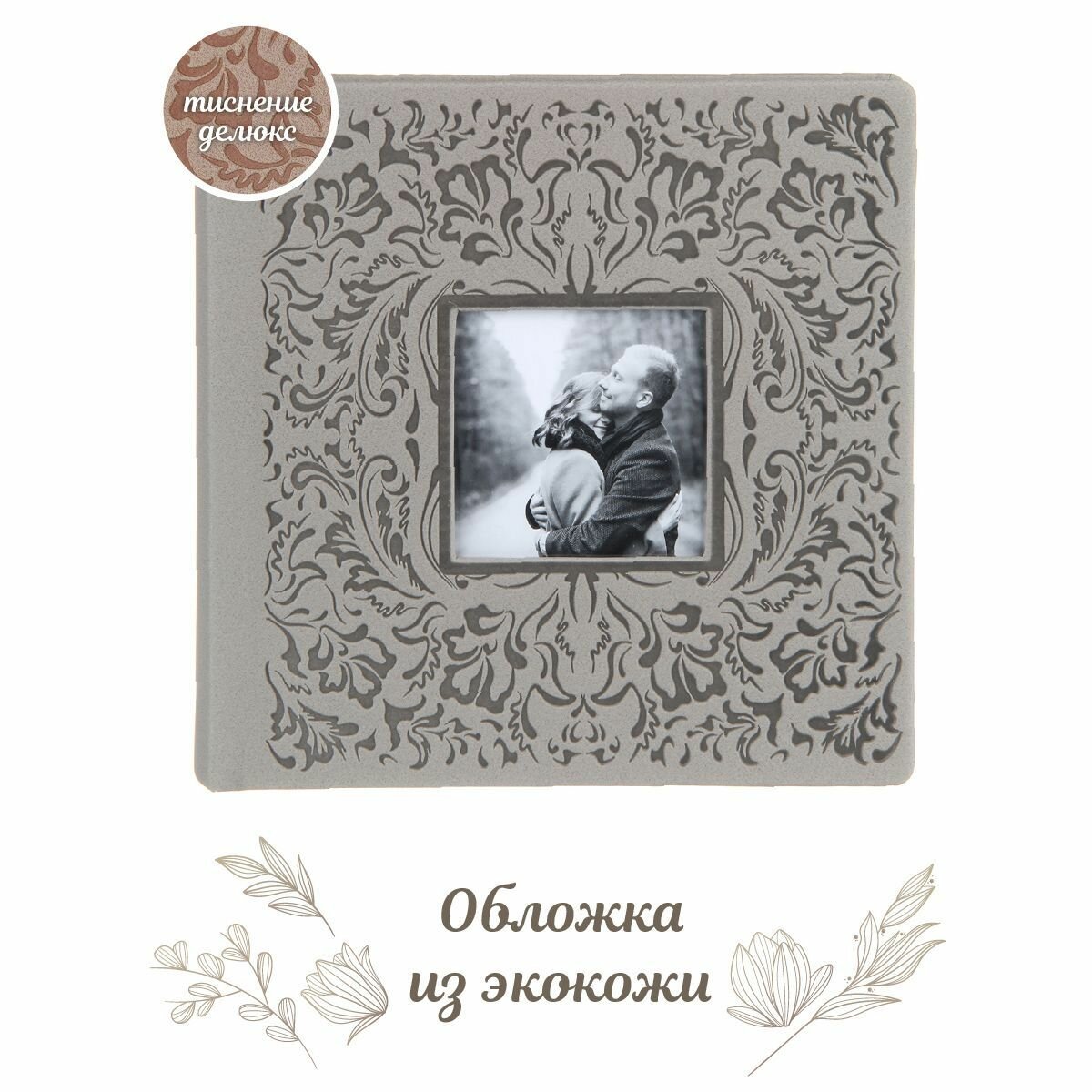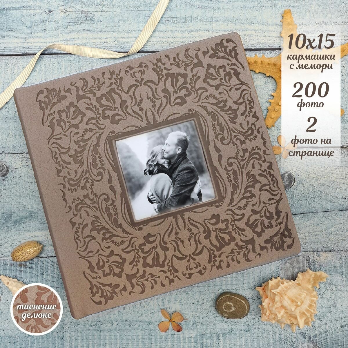 Фотоальбом из эко-кожи, двухцветный с вышивкой, 200 фото 10х15 см в кармашках