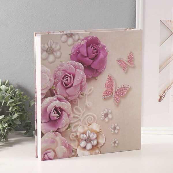 10 цен на Фотоальбом на 800 фото 10х15 см "Розы и бабочки" в коробке золотая обводка 5.5х30.5х33.5 см 107494
