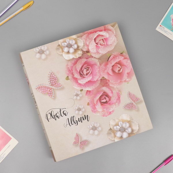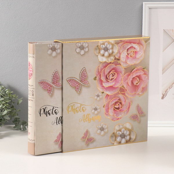 Фотоальбом на 800 фото 10х15 см "Розы и бабочки" в коробке золотая обводка 5.5х30.5х33.5 см 107494 2 833 ₽