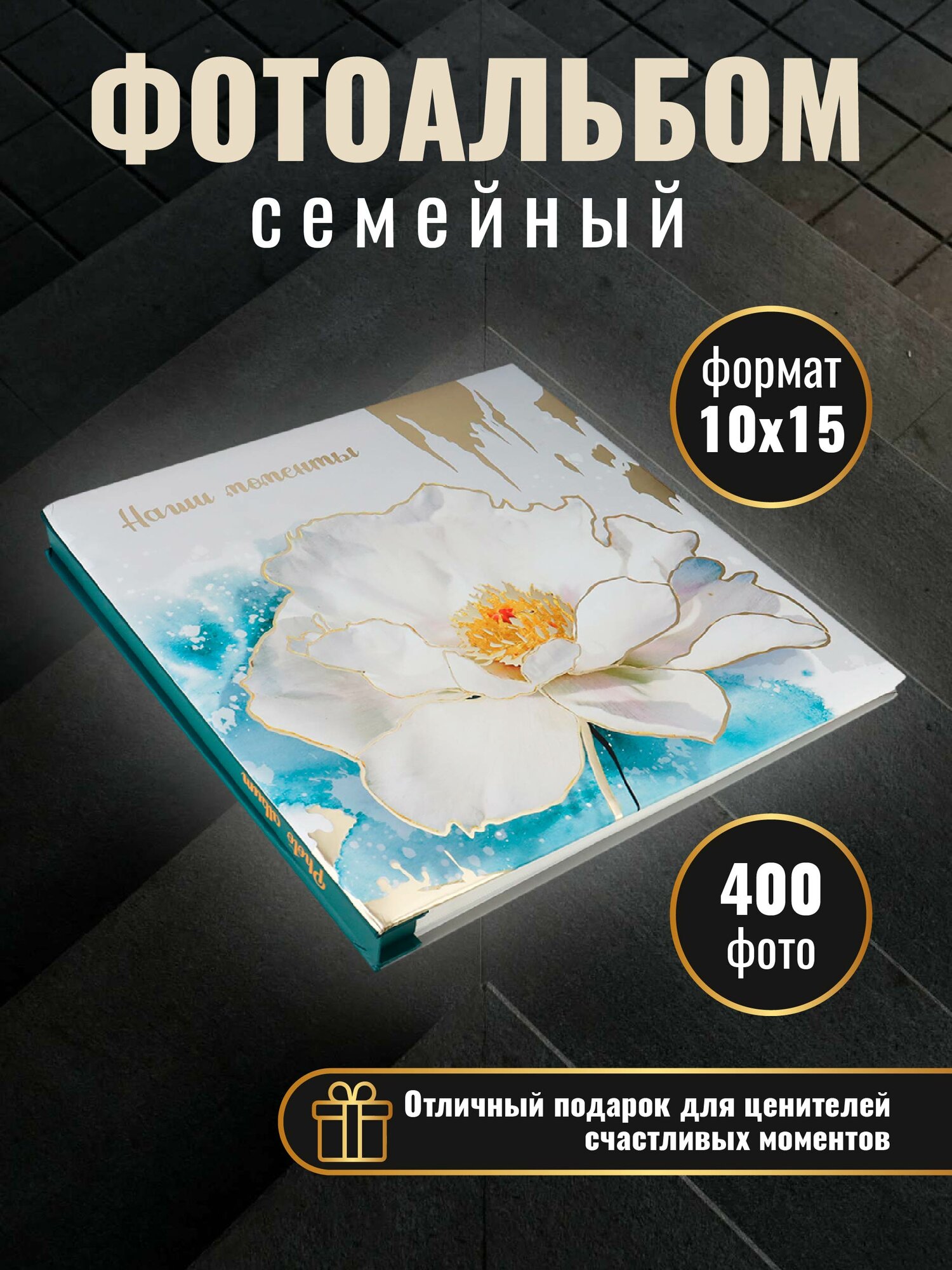 Семейный фотоальбом "Белый цветок" на 400 фото, 10х15, 40 листов информация: