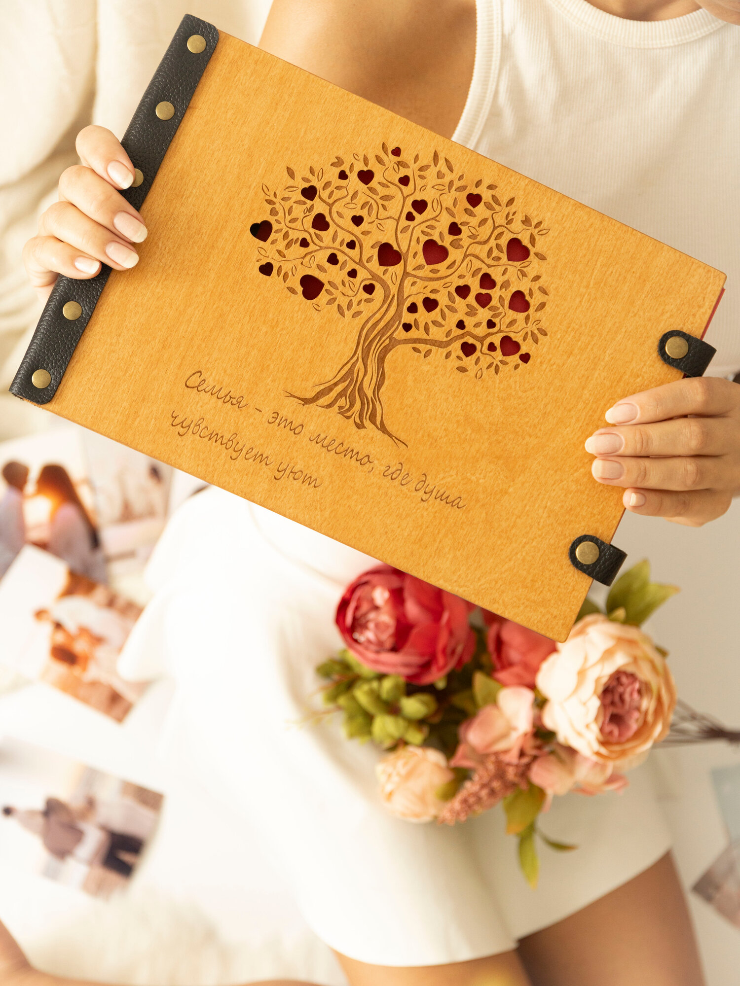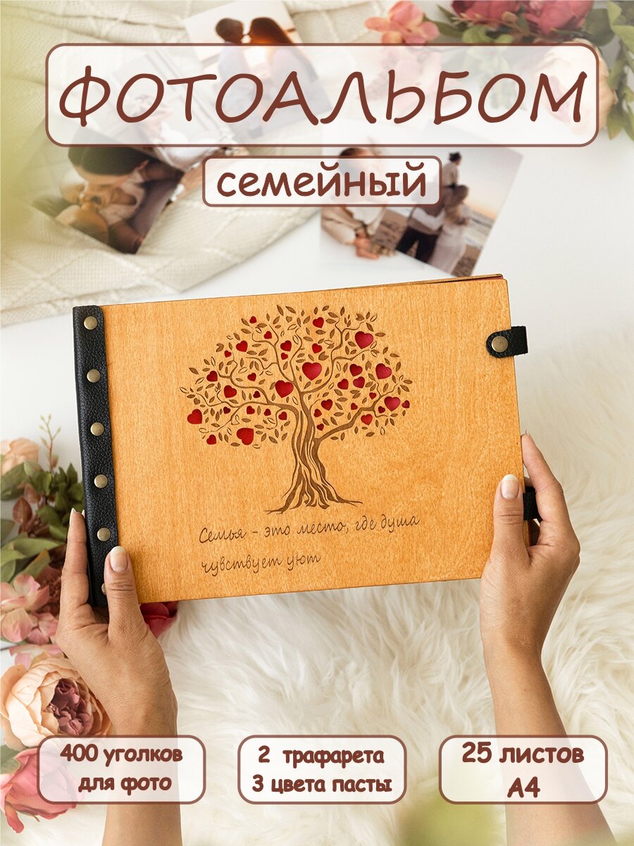 10 цен на Семейный фотоальбом "Дерево с сердцами", дерево, A4, 25 листов, ручная работа