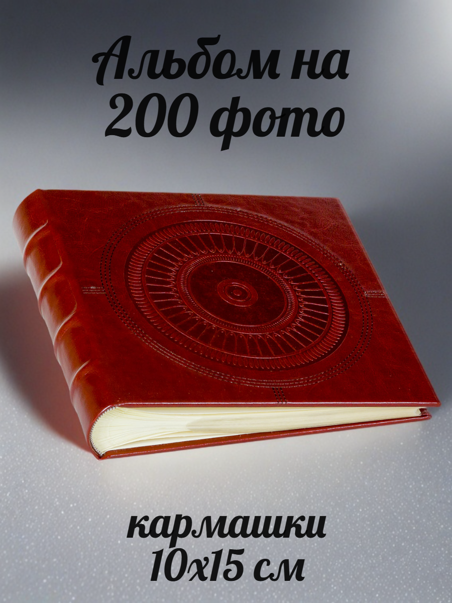Фотоальбом «Розетта» вишнёвая обложка из эко-кожи, 200 фото 10х15 см, кармашки, кейс информация: