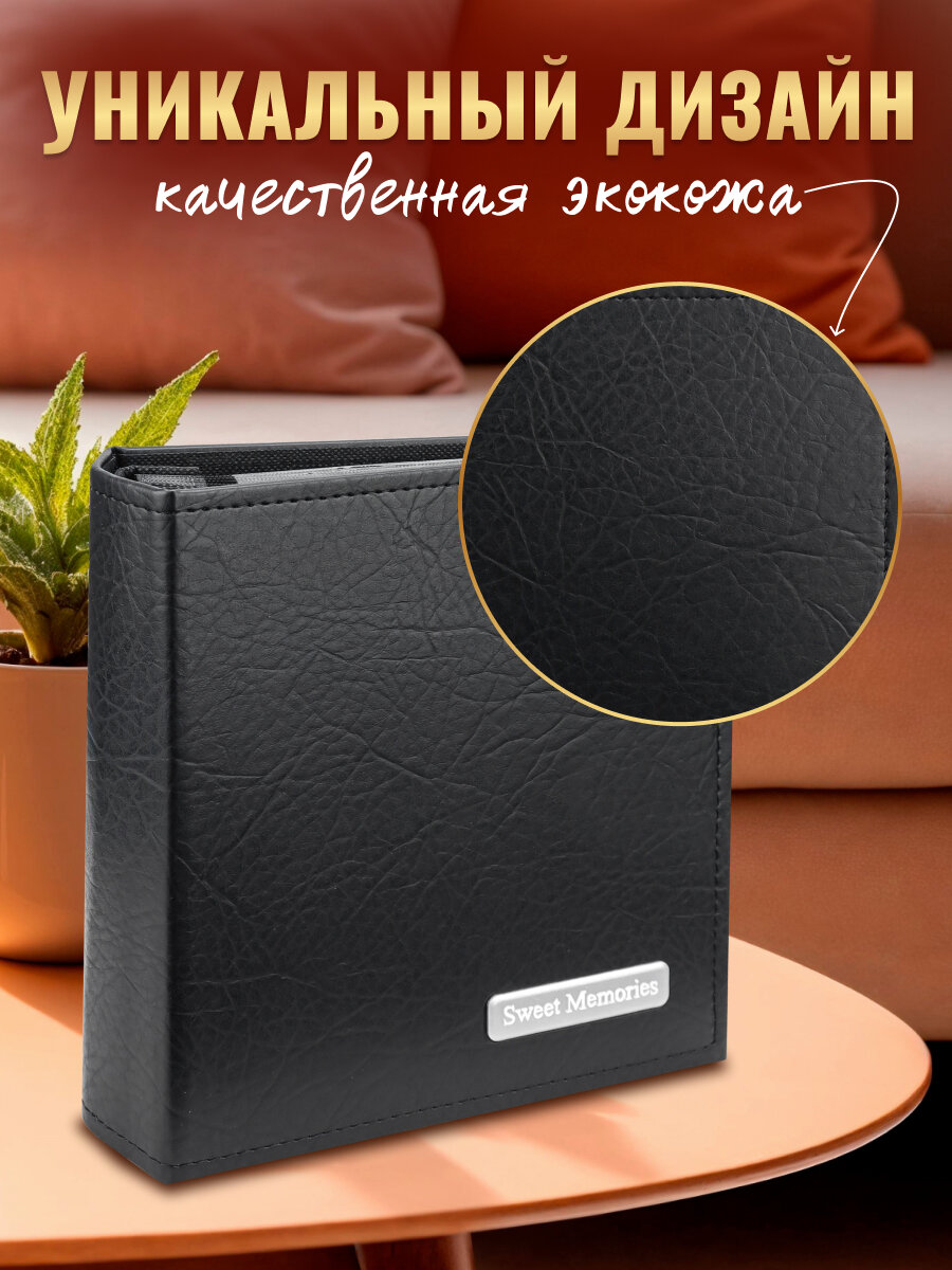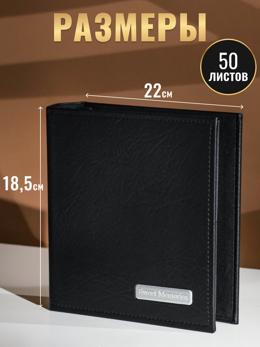 Фотоальбом из экокожи "Строгий стиль" на 200 фотографий, 10х15, 50 листов, черный, размер альбома 18.5х22 см информация: