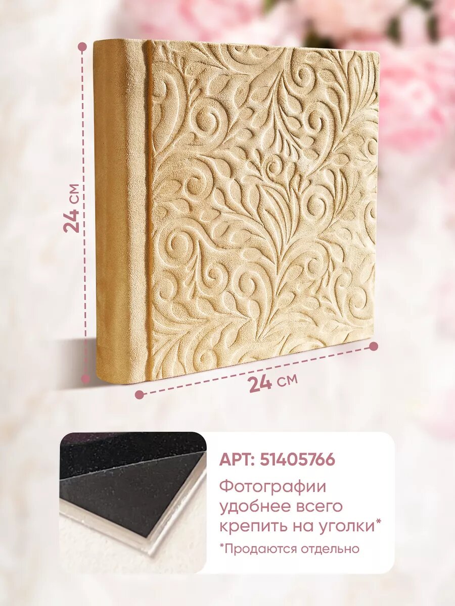 10 цен на Фотоальбом семейный экозамша в подарочной упаковке, светло-золотистый, 24х24 см