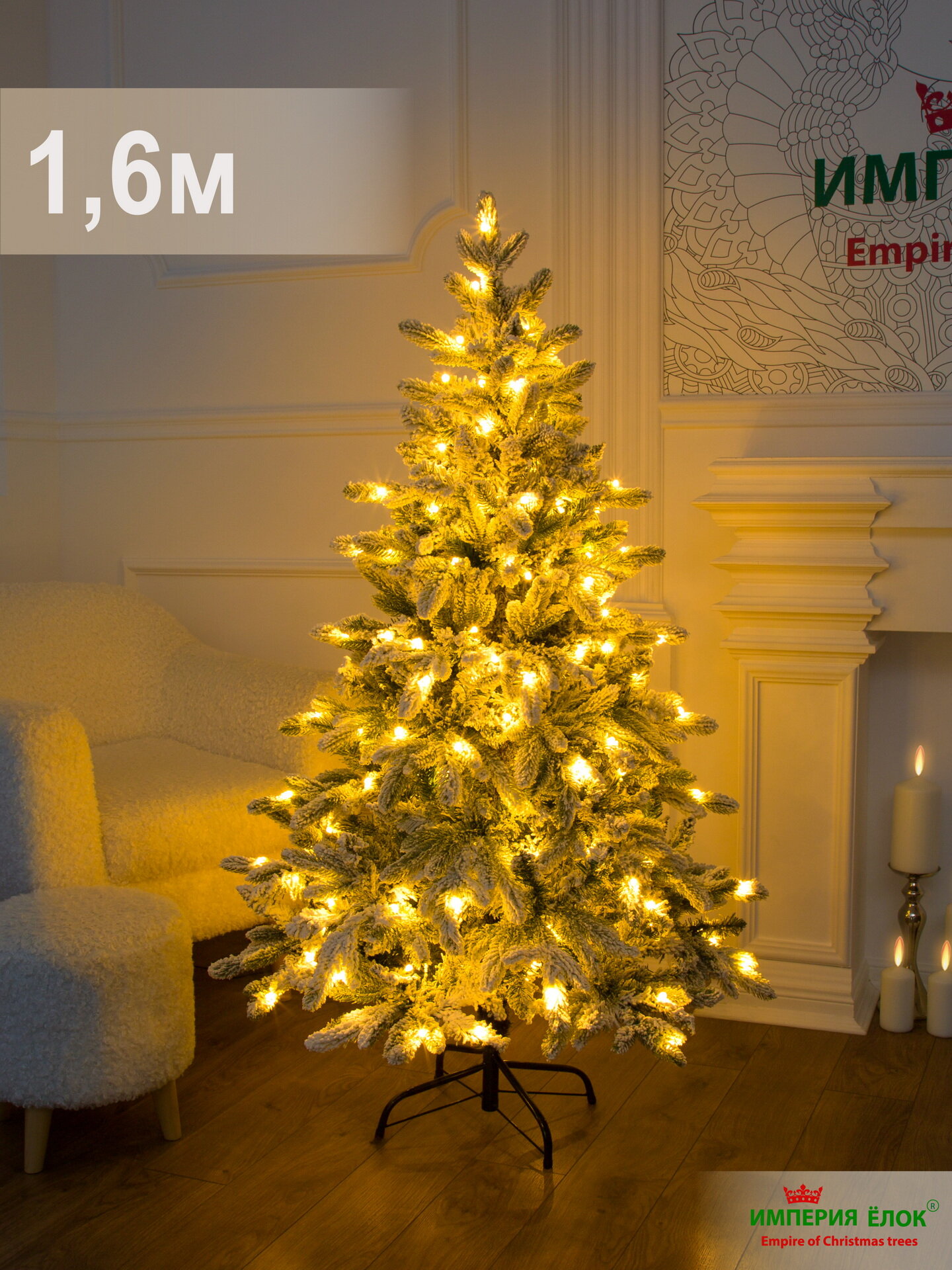 10 цен на Елка искусственная новогодняя заснеженная с гирляндой 160 см, ель для помещений, Империя Ёлок