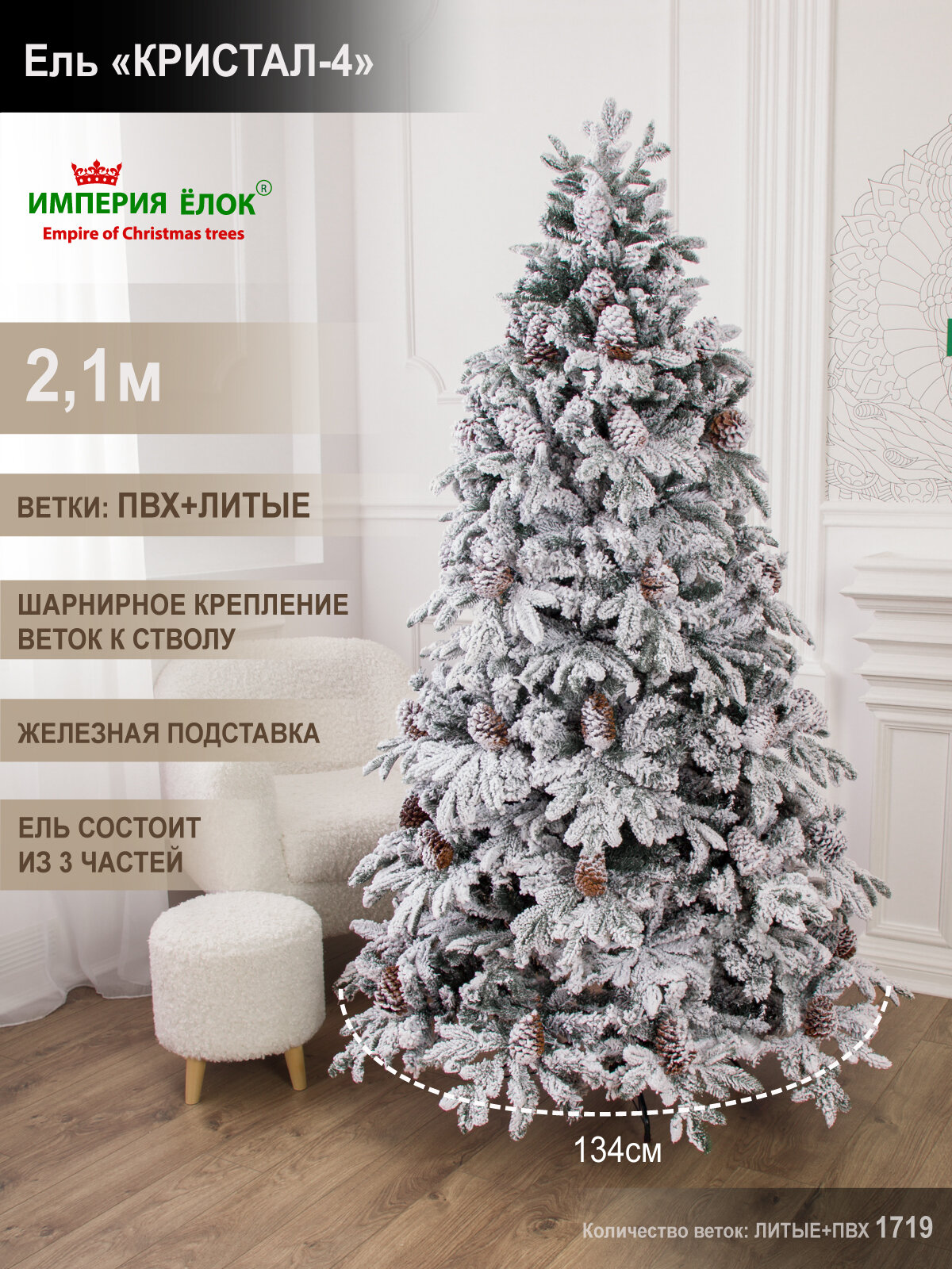 10 цен на Елка искусственная заснеженная с шишками литая+ПВХ 210 см, ель для помещений, Империя Ёлок