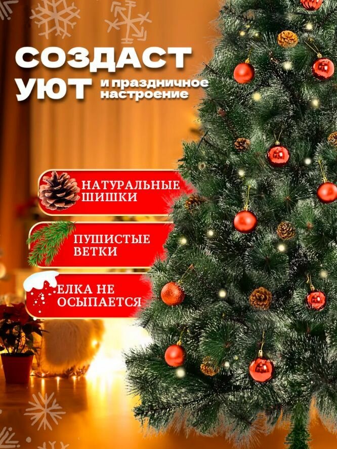 10 цен на Искусственная Елка разборная, Из ПВХ, 180 см, гирлянда, шишки