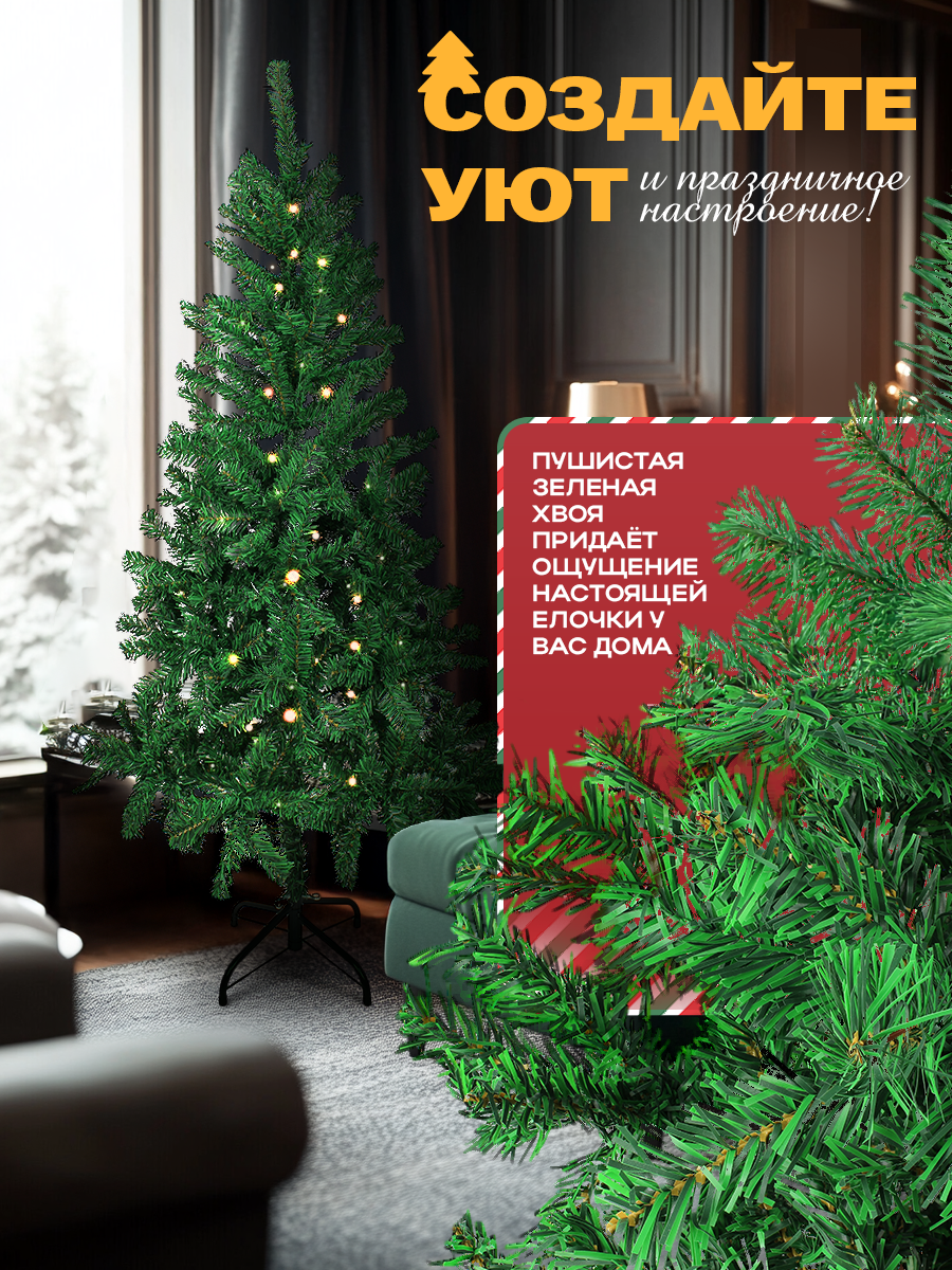 10 цен на Елка искусственная новогодняя разборная на подставке, 210х110 см