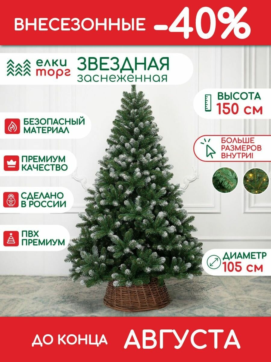 Новогодняя искусственная елка Звездная заснеженная 150 см, мягкая хвоя, (188150) информация: