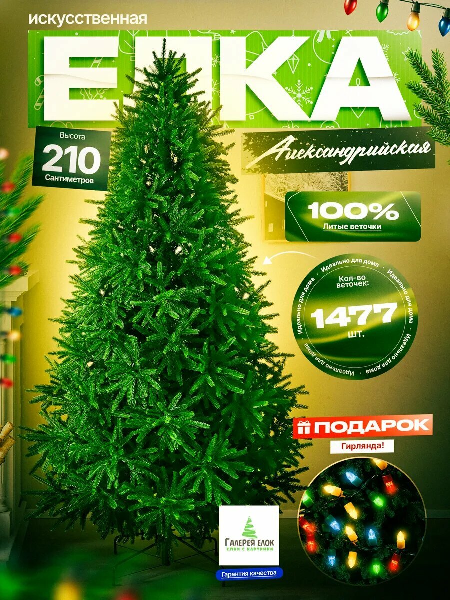 Искусственная Ёлка "Кремлёвская" Ёлкино, Литая 210 см// Новогодняя интерьерная ёлка