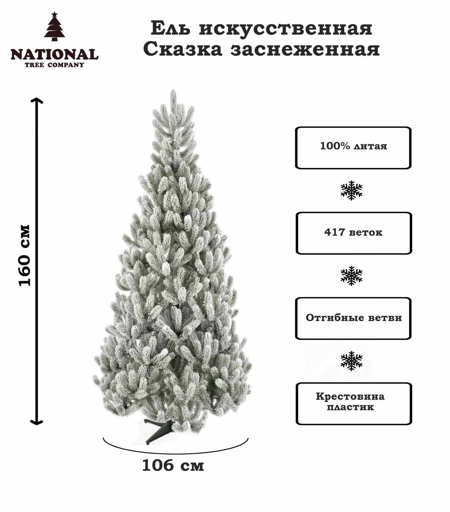 Литая елка искусственная National Tree Company Сказка заснеженная 160 см, новогодняя, праздничная, разборная информация: