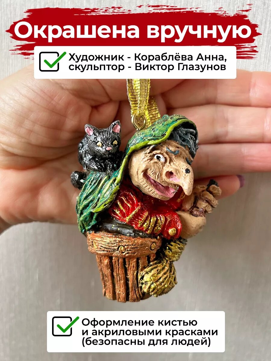 10 цен на Баба яга на елку, новогодняя игрушка, полистоун, 7 см, АБ Сувениры