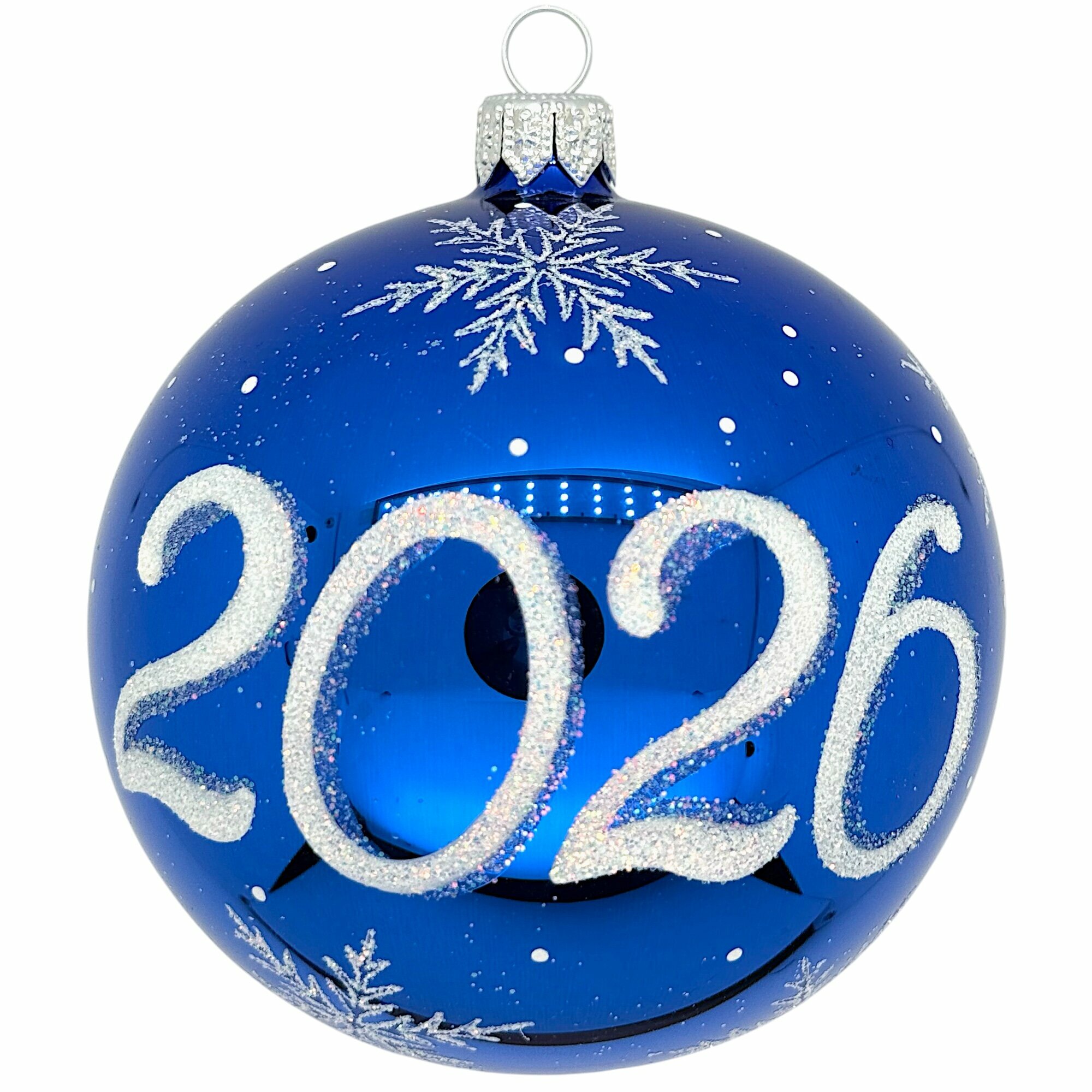 Ёлочный шар 100 мм "2026" (Ёлочка) синий, стеклянный ёлочный шар информация: