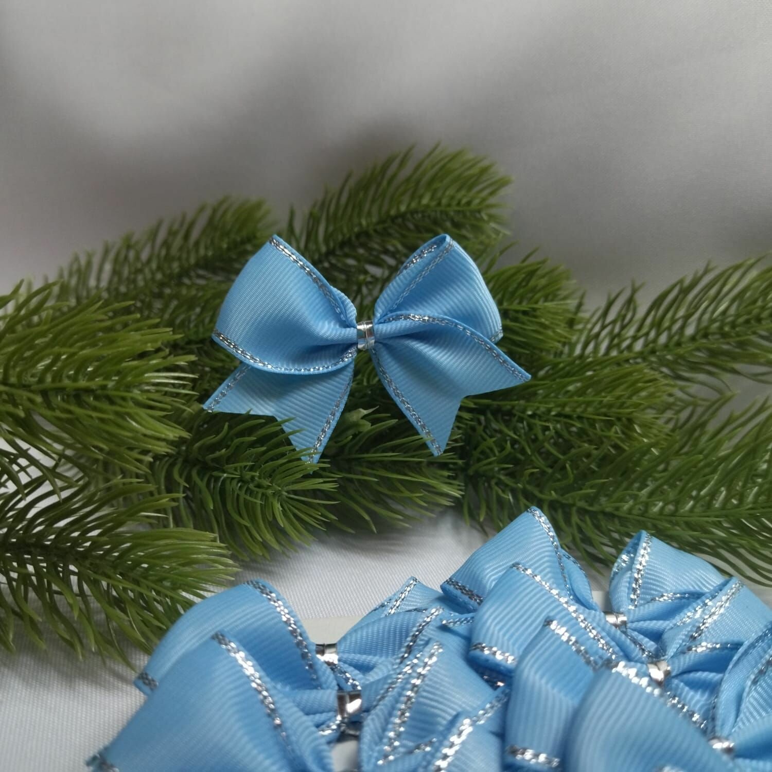 Банты новогодние 20 шт, репсовые, в голубом цвете с серебряным люрексом, крепление твист информация: