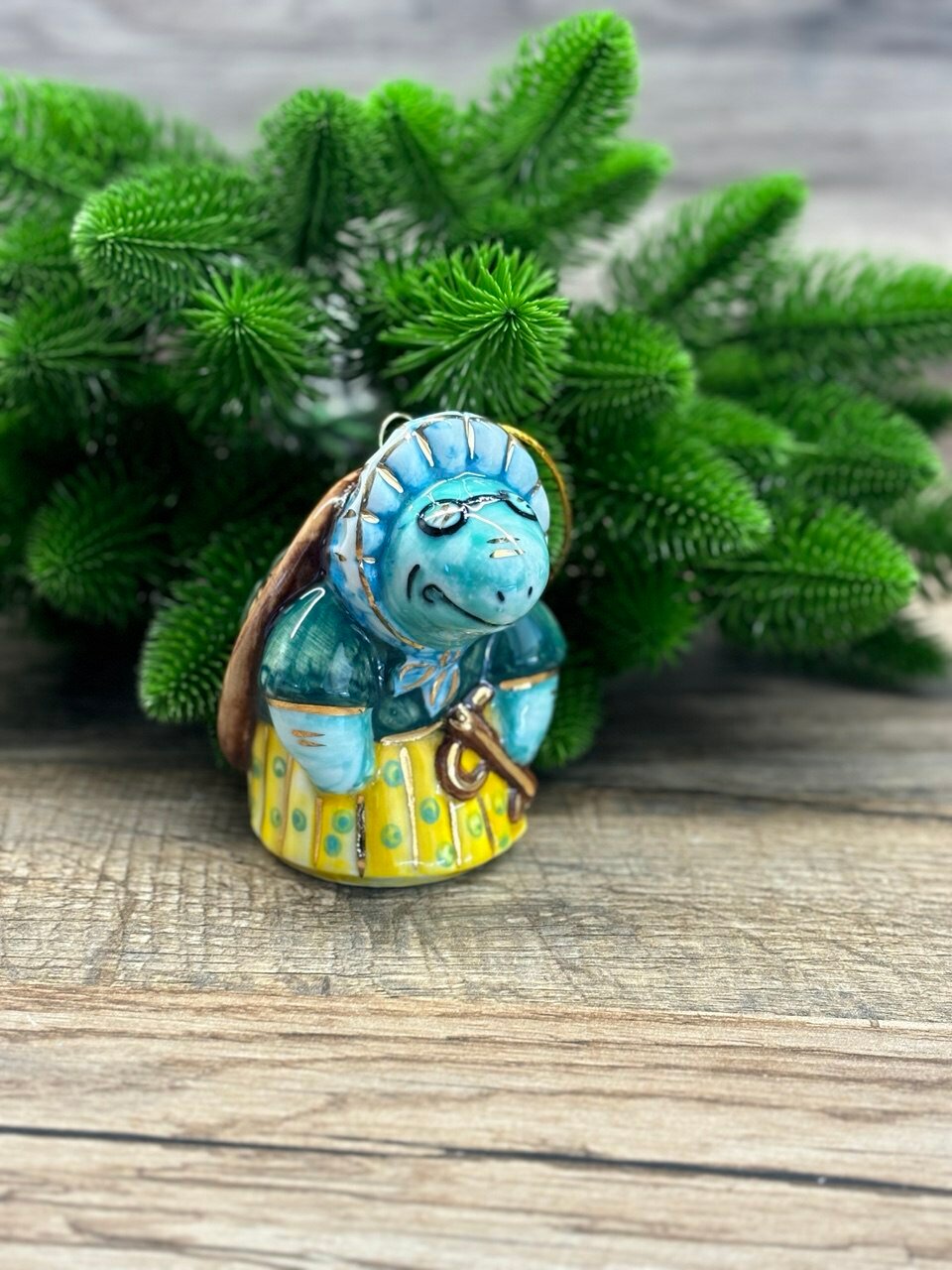 Елочная игрушка Черепаха Тортилла из сказки "Буратино", Лефортовский фарфор, ручная роспись информация:
