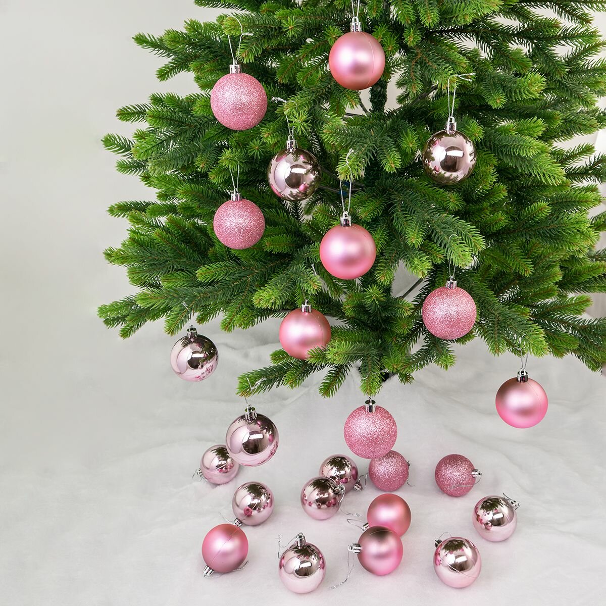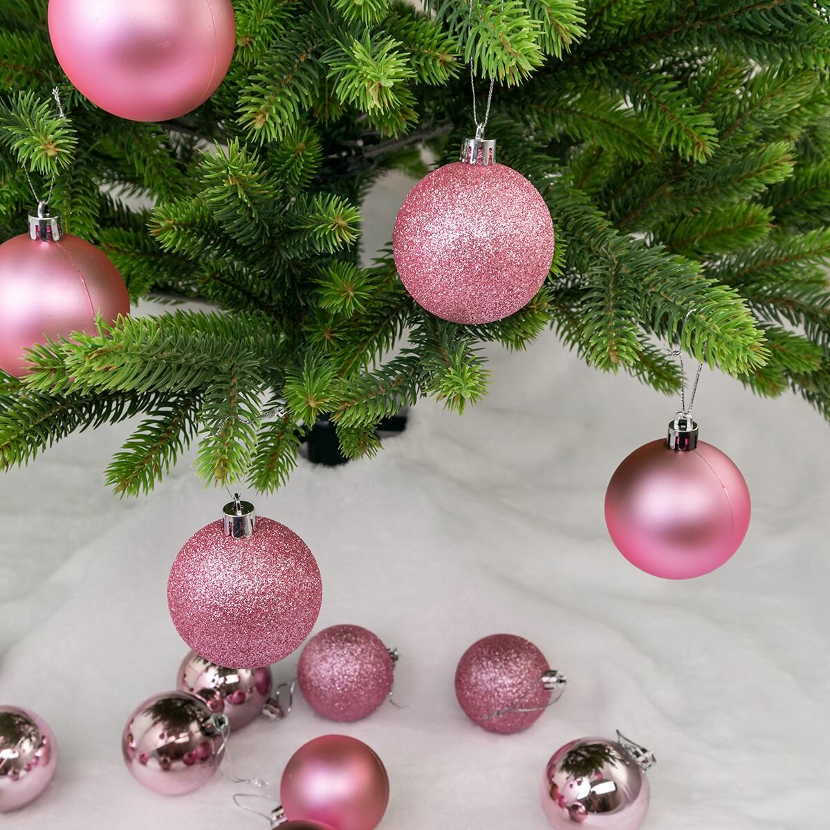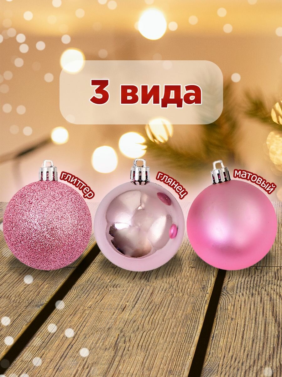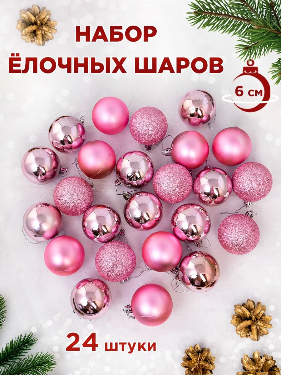 Елочные шары 6 см (матовый, глянец, глиттер), цвет розовый, набор 24 штуки информация: