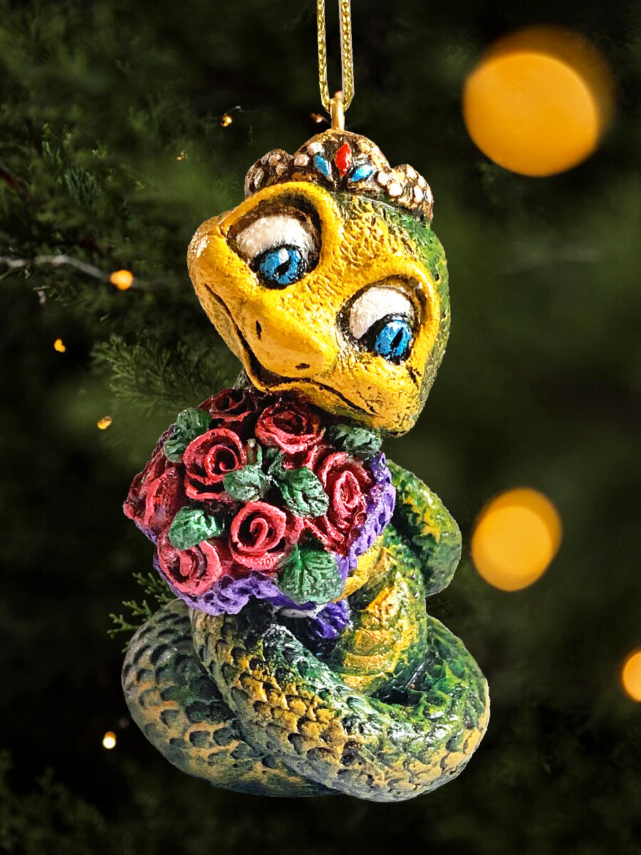 Отзывы на Новогодняя игрушка на елку змея зеленая с цветами 8,5 см символ года 2025, ручная роспись, АБ Сувениры