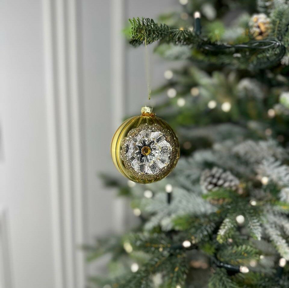 Елочный шар Лавка Чудес "Калейдоскоп", стекло, золотисто-желтый цвет, 8 см информация: