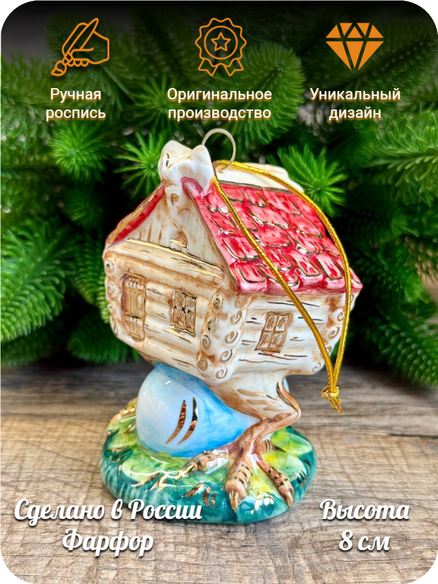 Елочная игрушка Лефортовский фарфор "Избушка летняя", ручная роспись, 9 см информация: