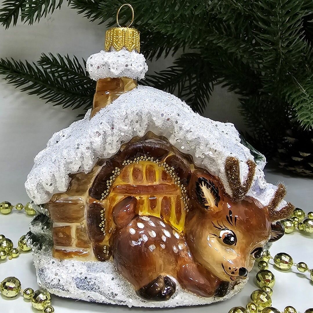 Отзывы на Irena-Co елочная игрушка, стекло Домик с олененком (9,5х10х7см)