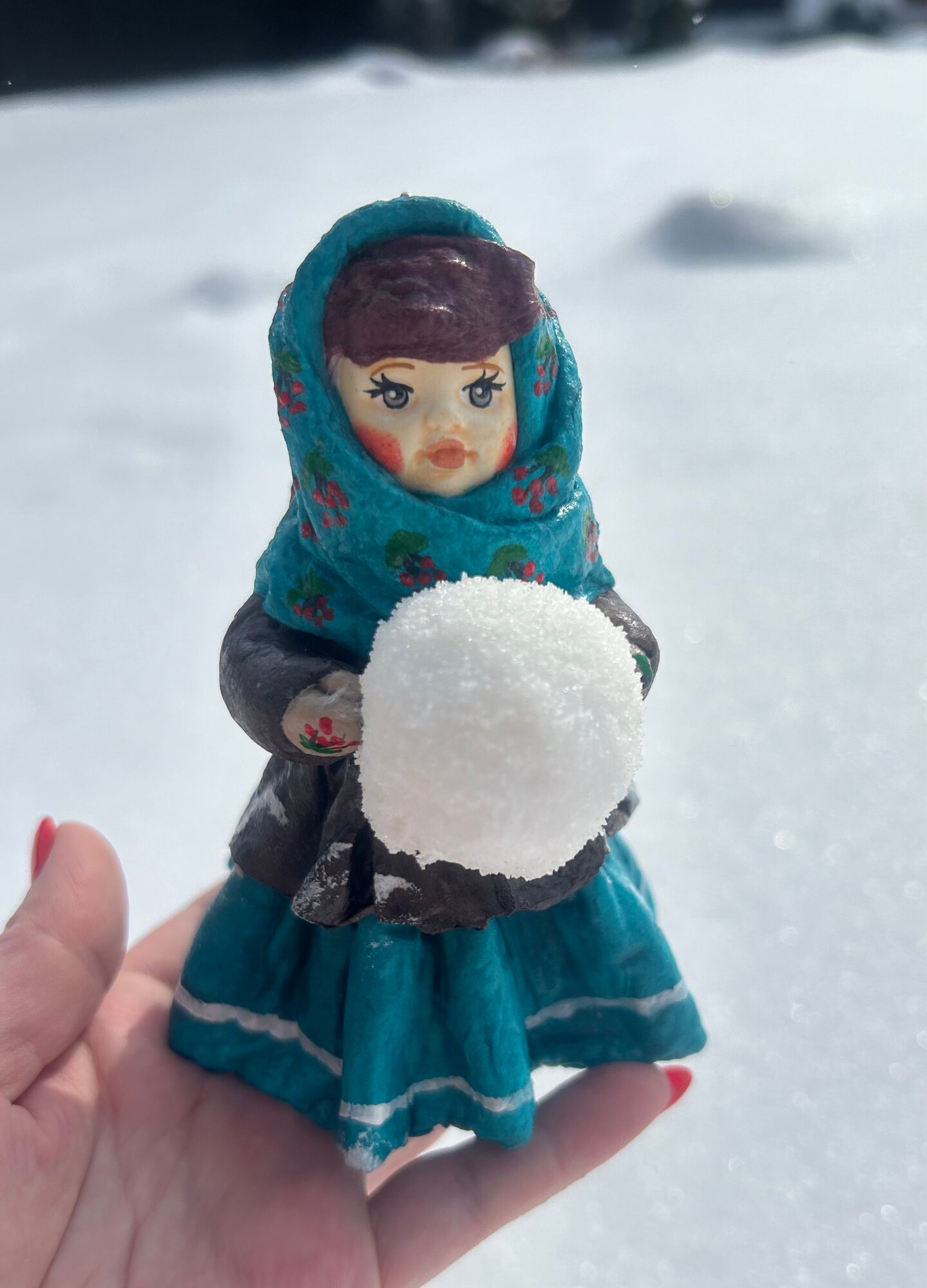Ватная елочная игрушка - девочка со снежным шаром информация: