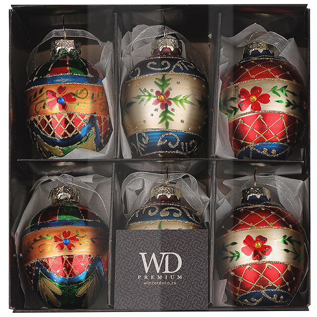 Набор стеклянных елочных игрушек Яйца - Lonate Pozzolo 8 см, 6 шт, подвеска информация: